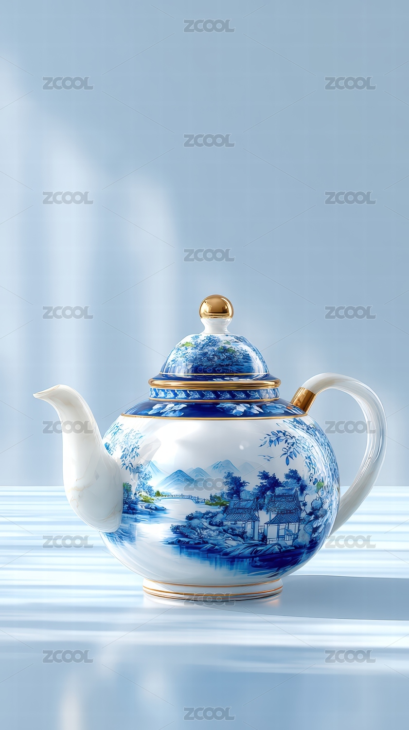 茶壶青花瓷器展示场景