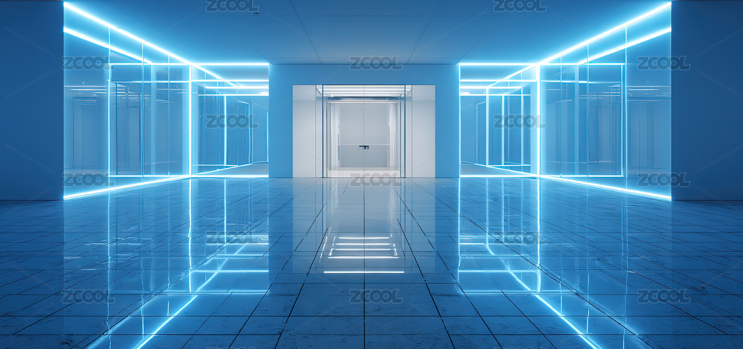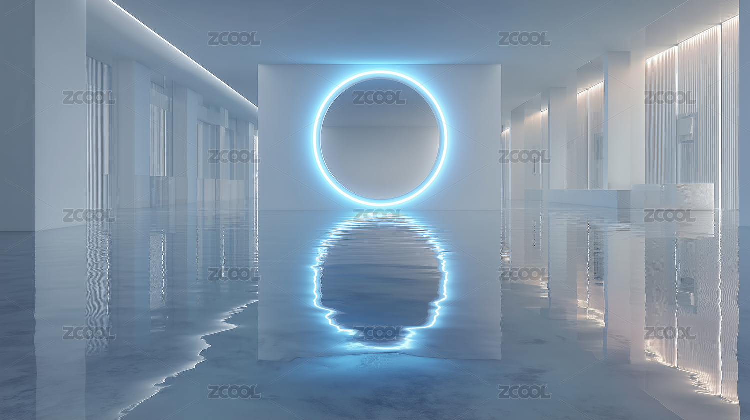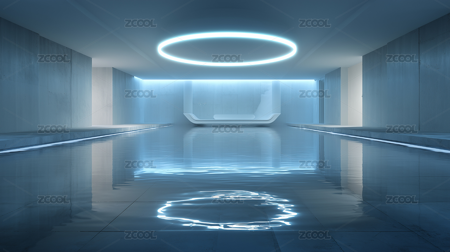 水银,地板,无限,反射,几何,光环,光线,蓝色,科技,极简