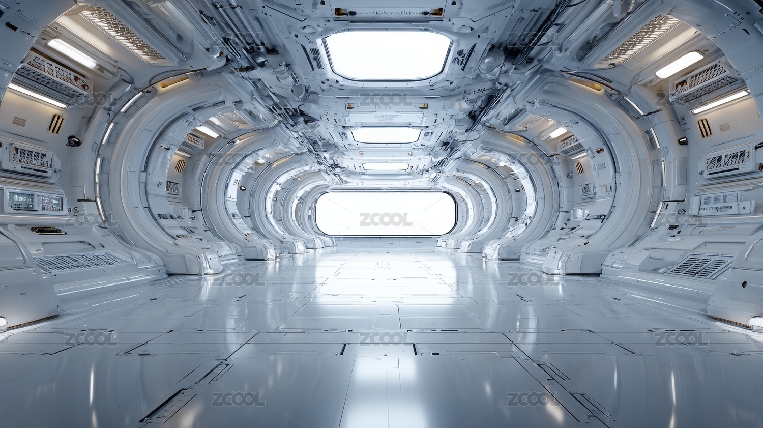 未来感太空舱内部走廊