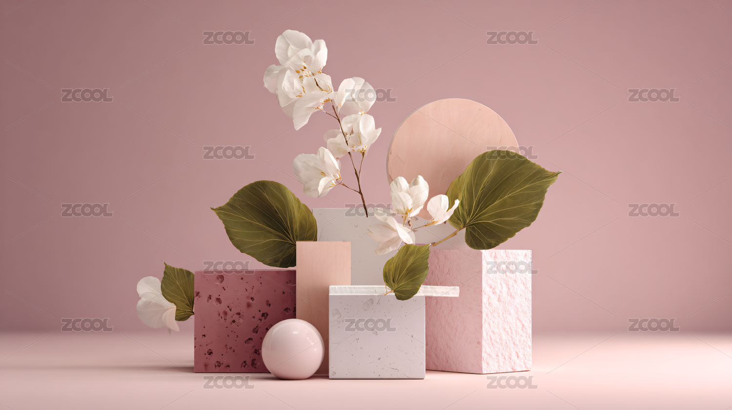 粉色,立方体,展示,产品,兰花,植物,茎干,空间,布局,极简