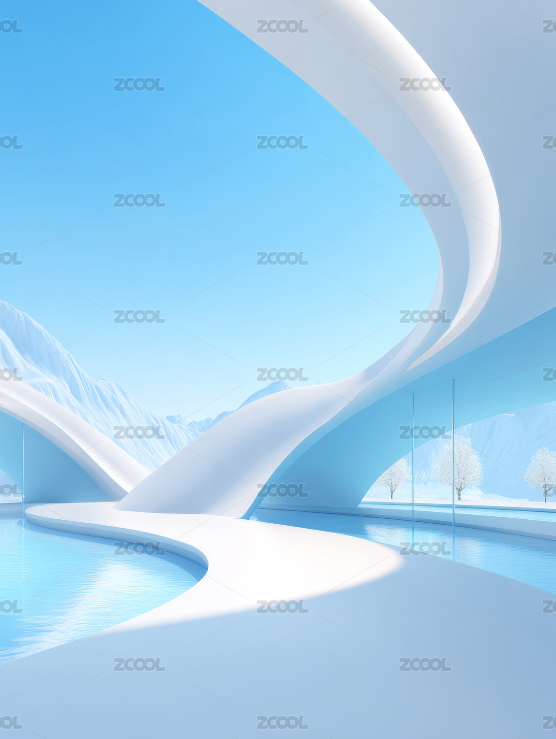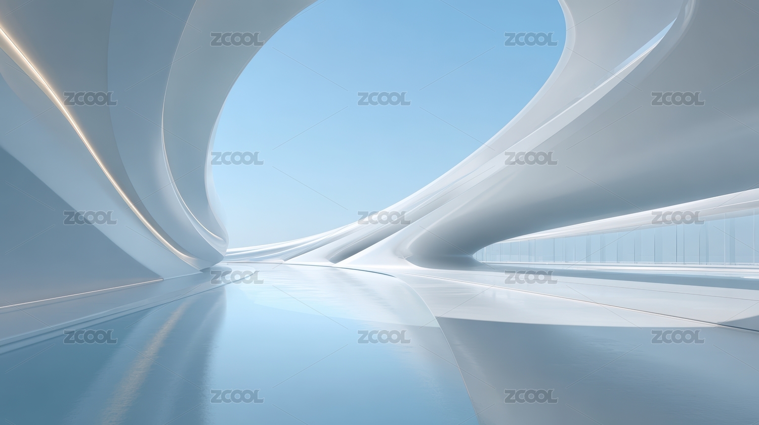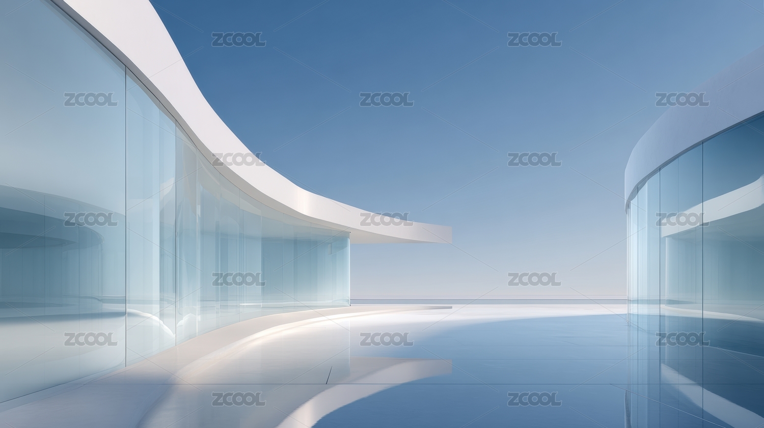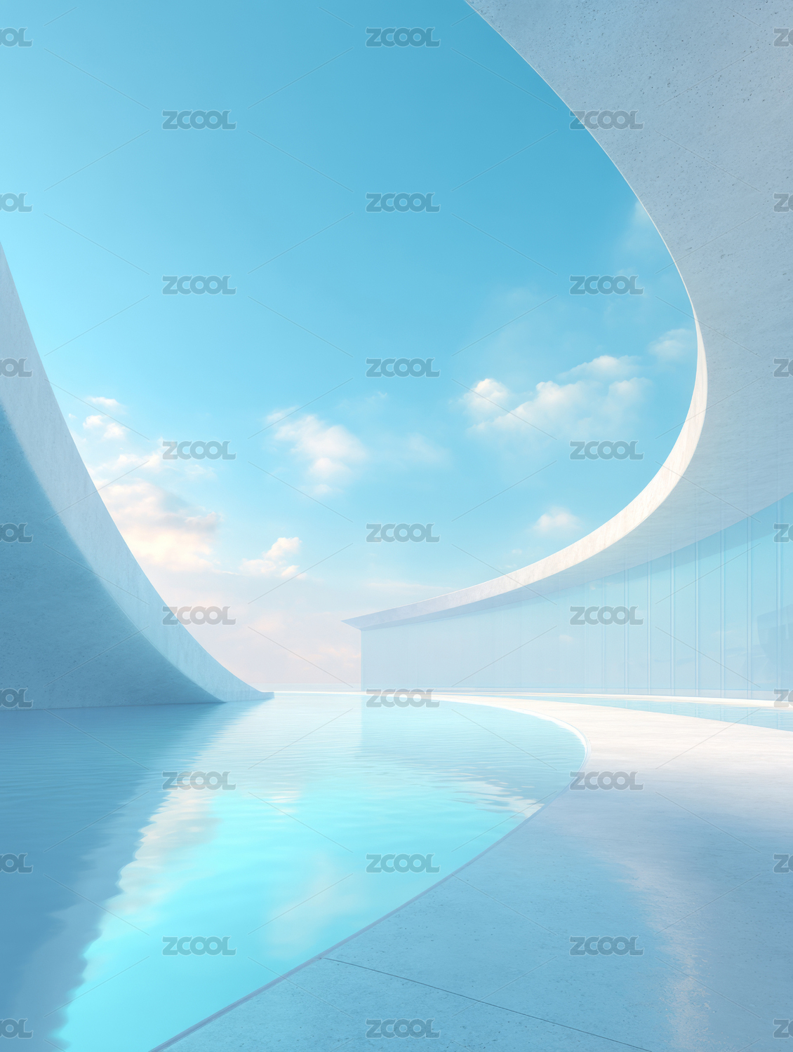 未来,建筑,水池,曲线,设计,蓝天,现代感,简洁,反射,户外