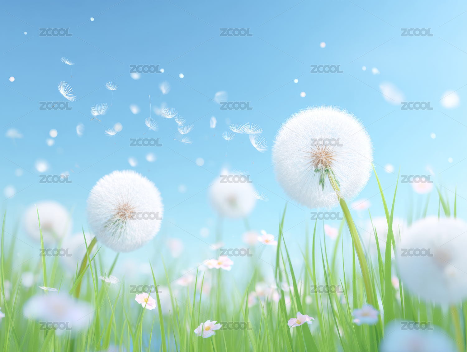 蒲公英,花海,木椅,紫色,花朵,蓝天,自然,风光,宁静,田野