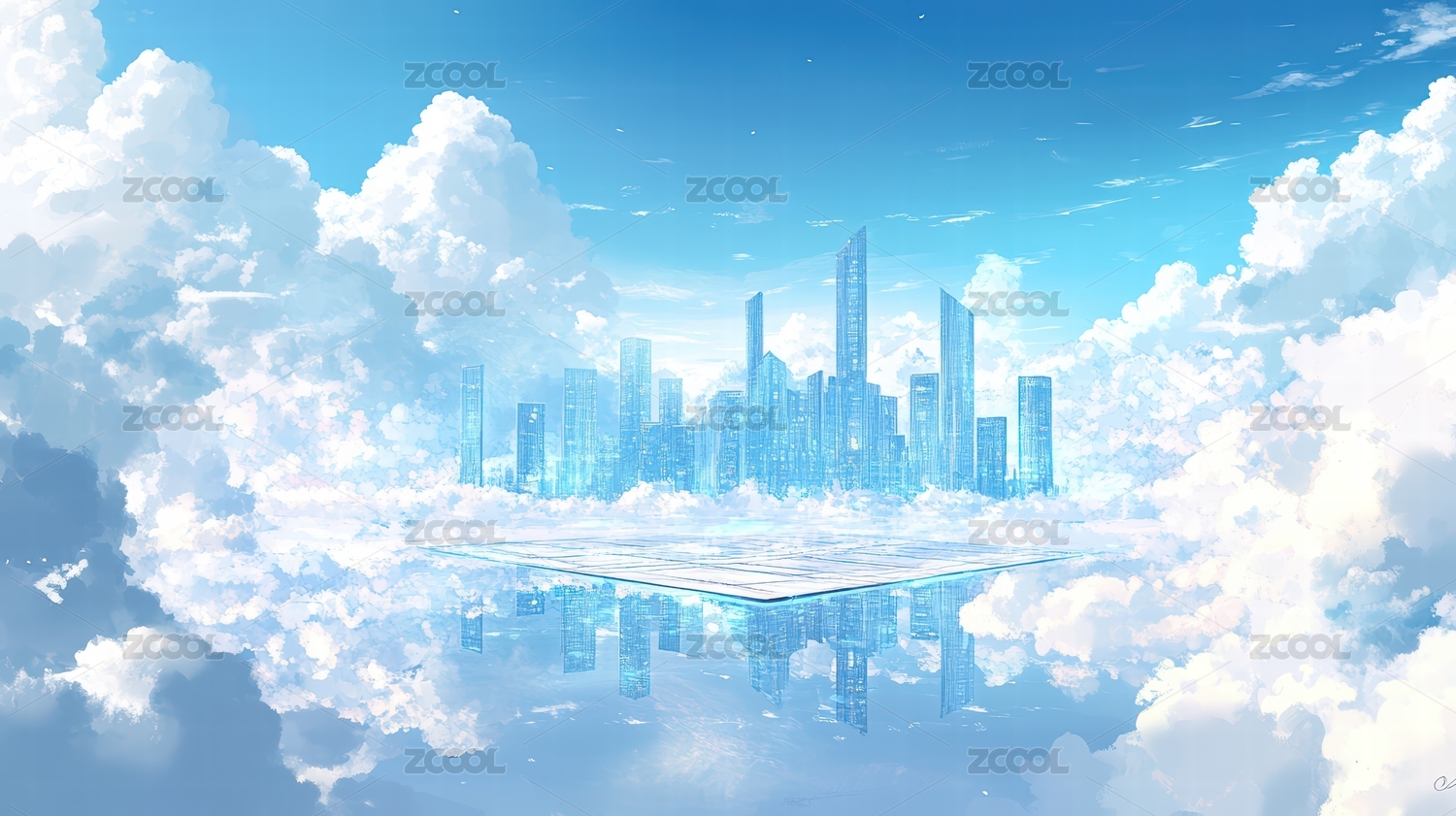 未来城市倒影于云端