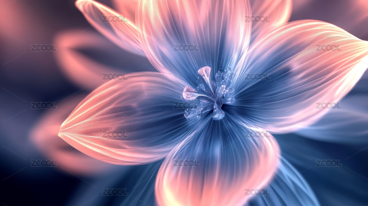 黑背景烟雾流动的荧光色3D全息透明花朵