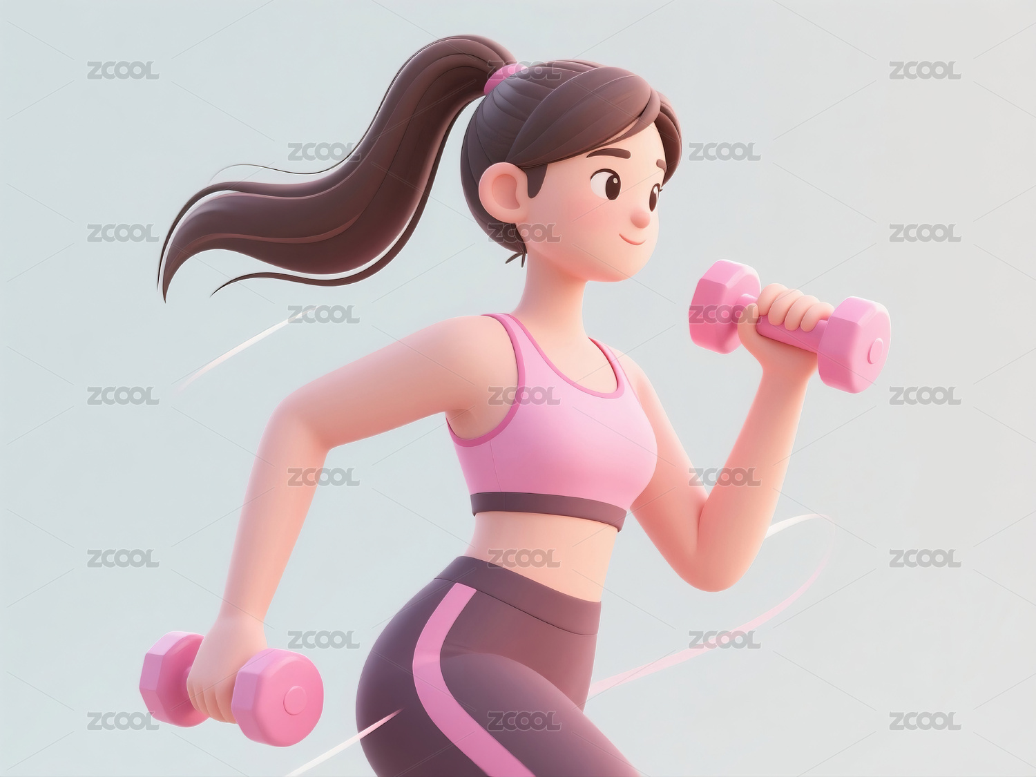卡通人物手持哑铃跑步