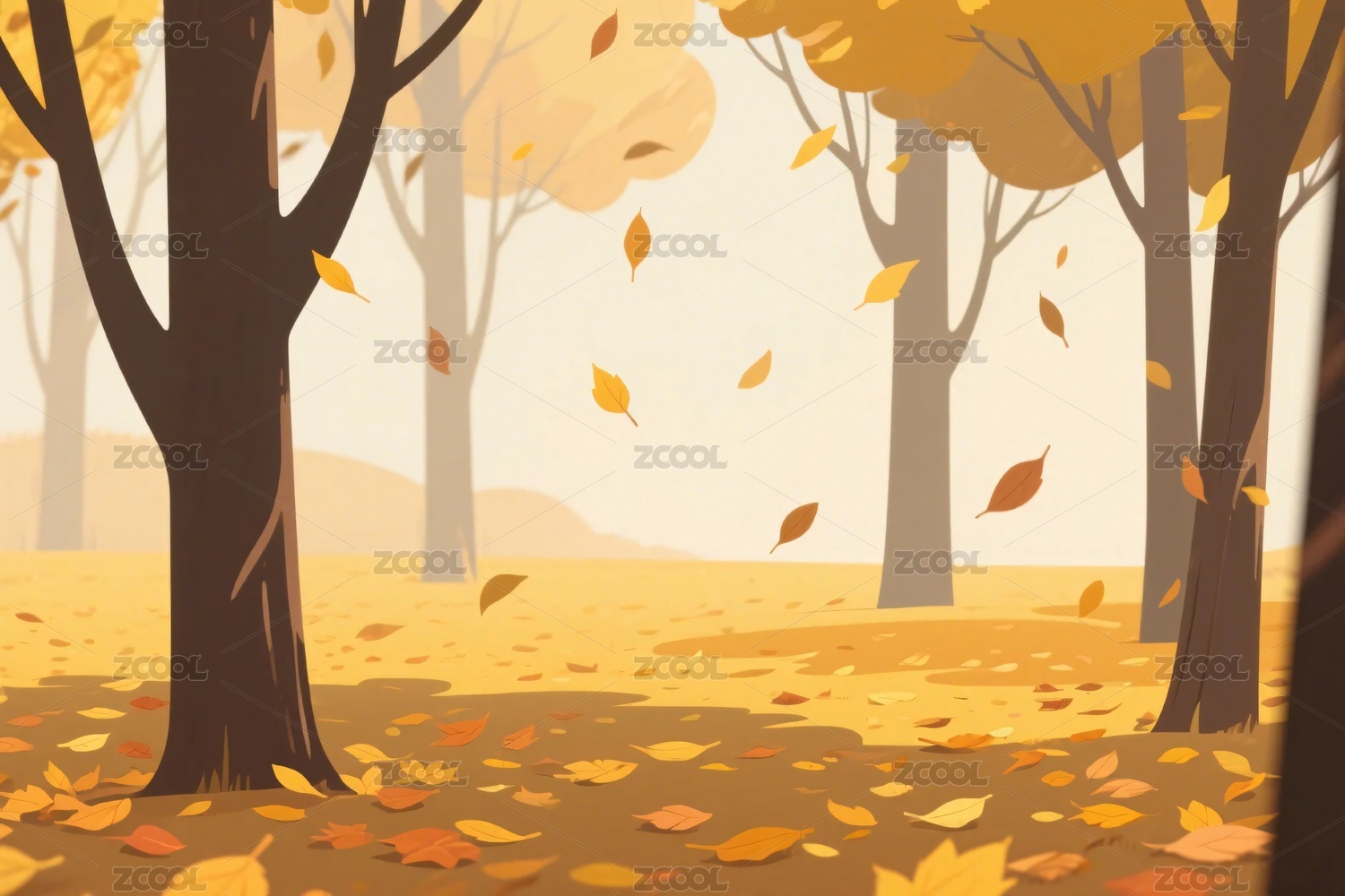 秋季树林落叶插画
