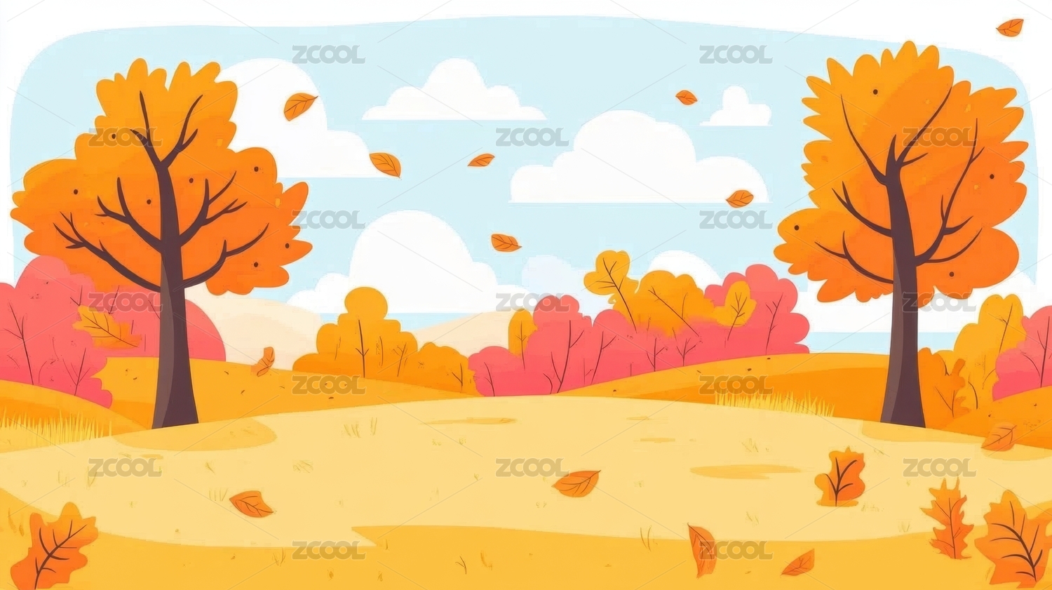 秋天秋季户外自然风光风景卡通漫画插画