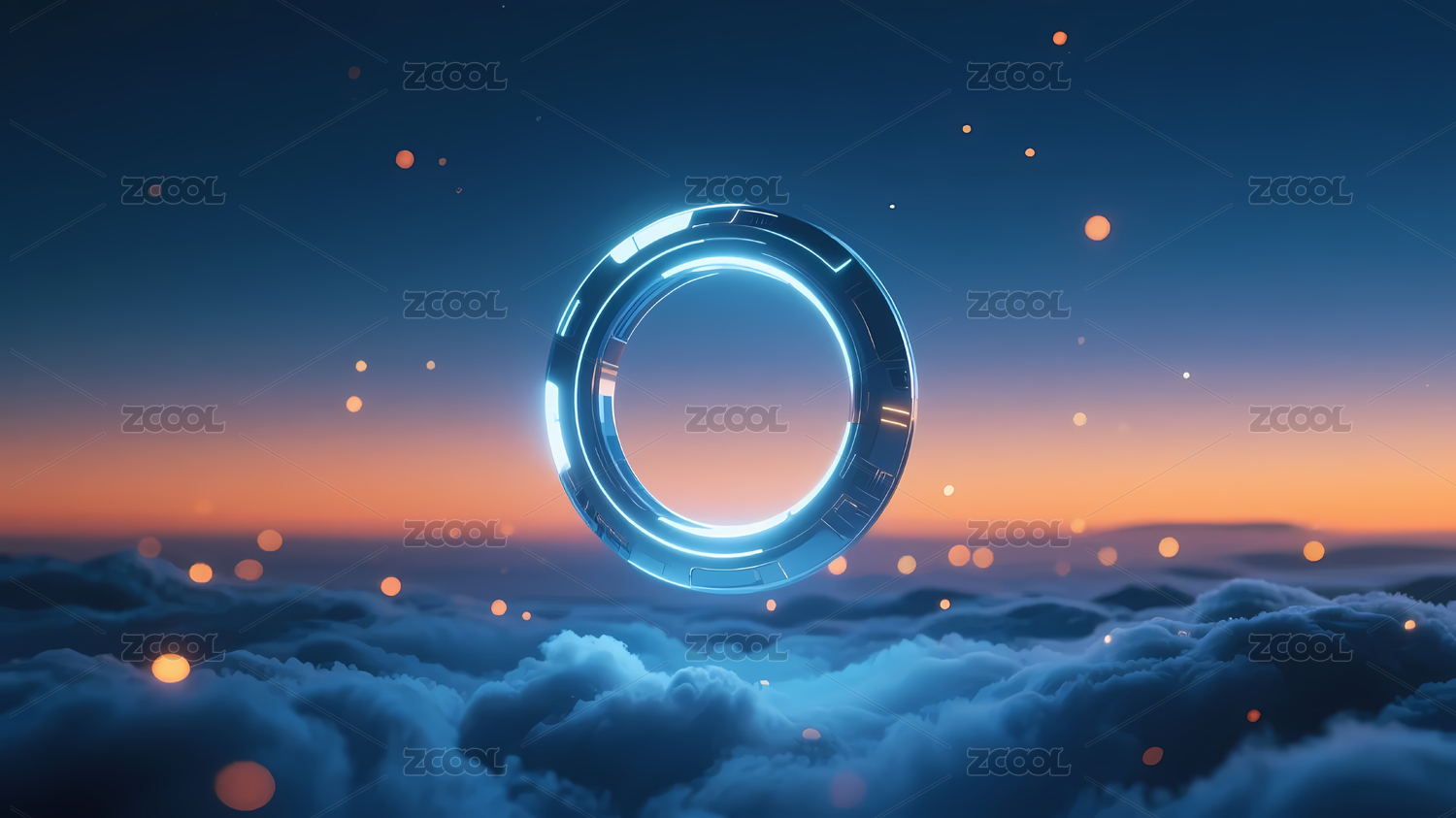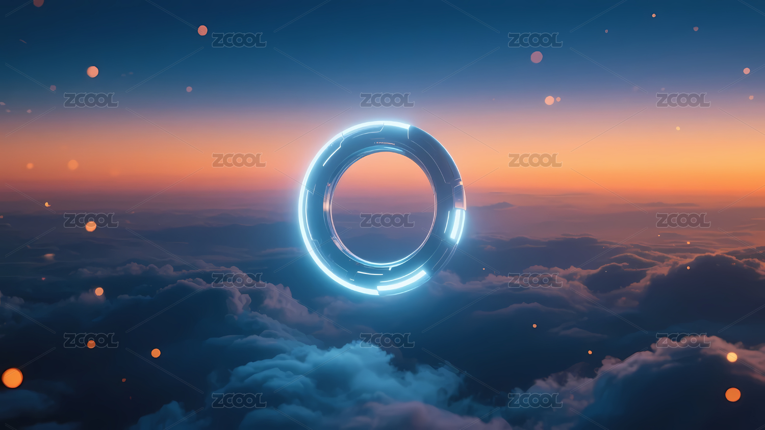 蓝白发光环形结构夕阳