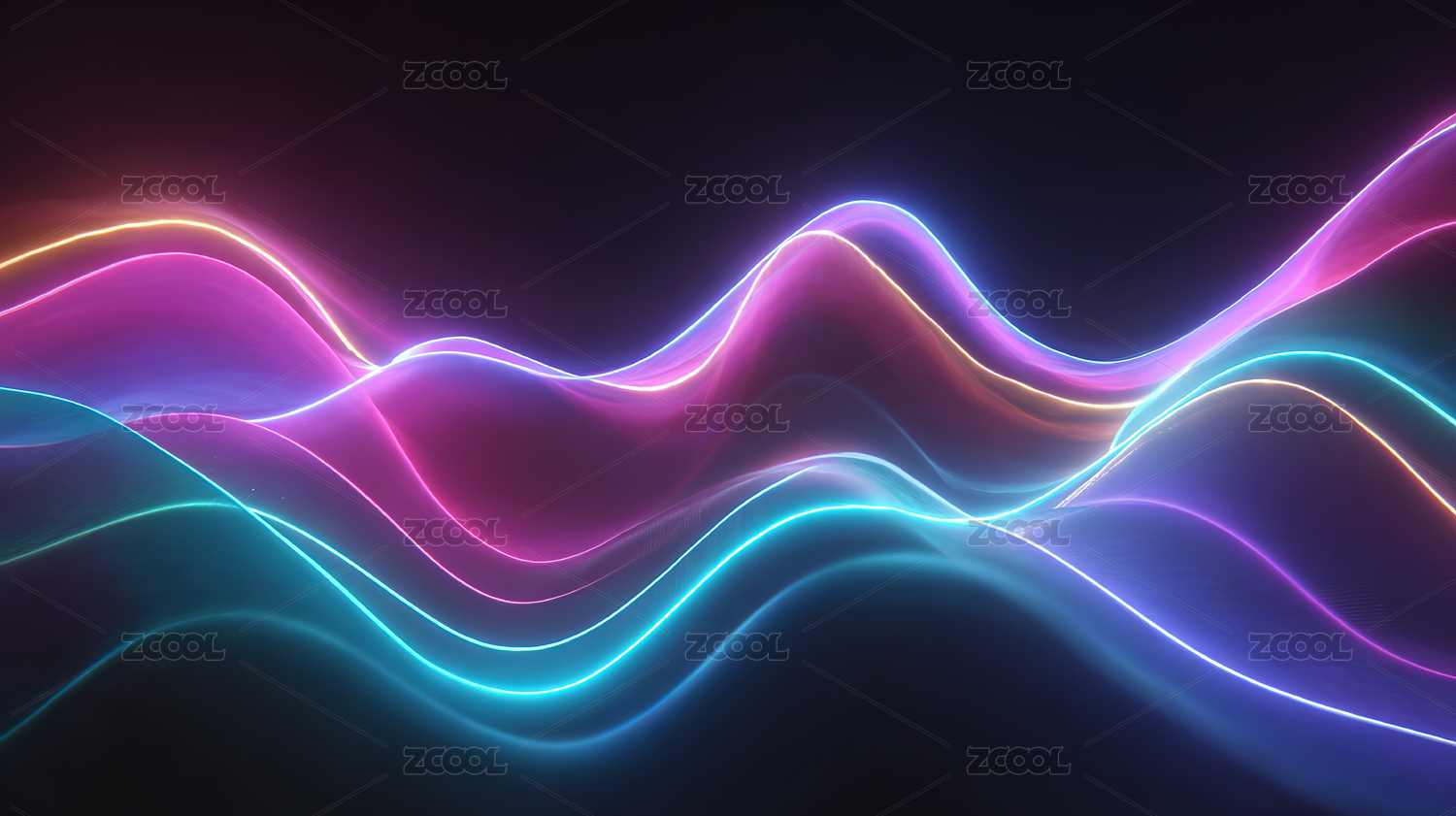 3D渲染波浪线条抽象kv主视觉PPT背景