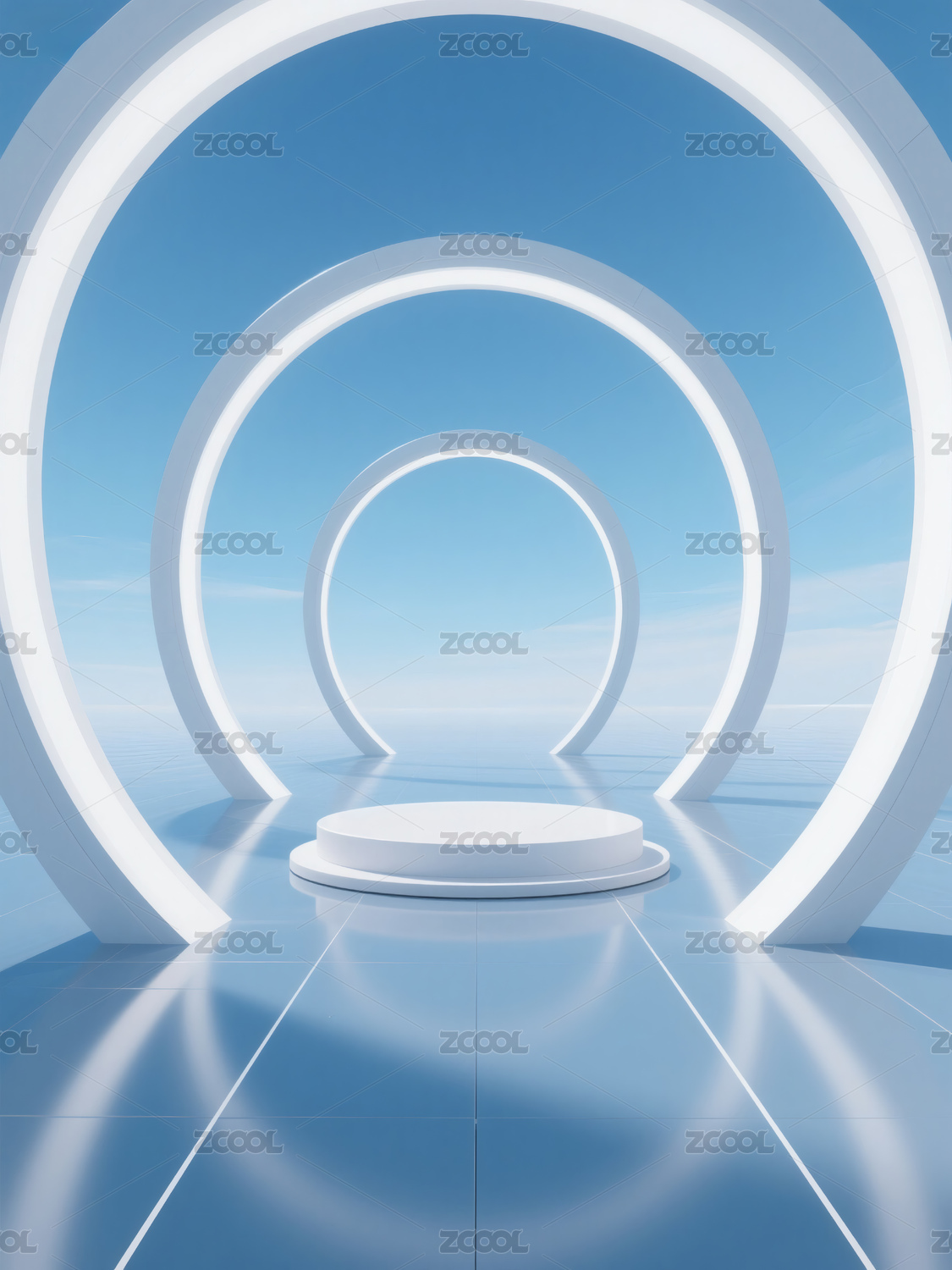 白色,环形,未来主义,科技感,未来感,天空,蓝天,云雾,缥缈,建筑