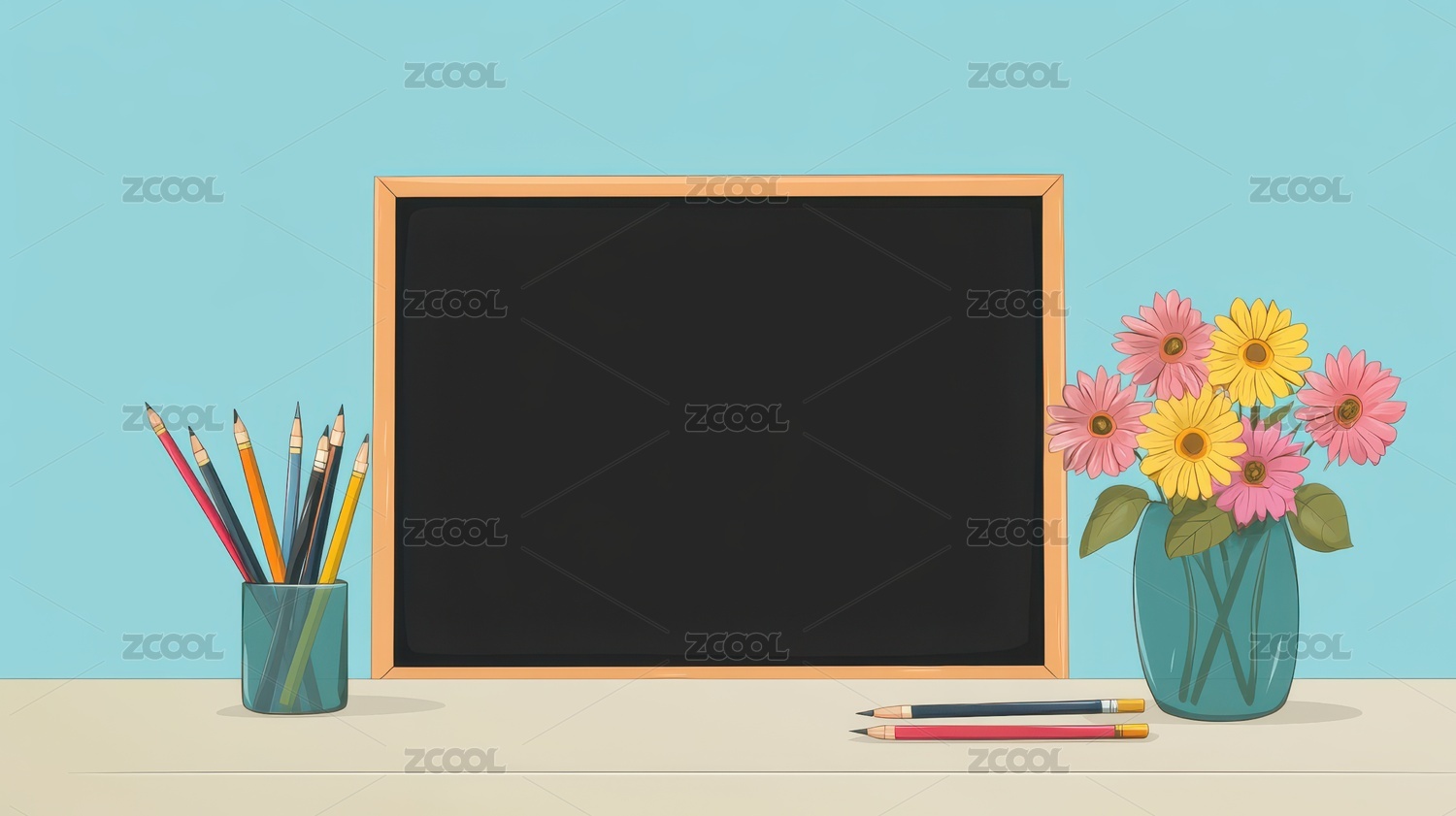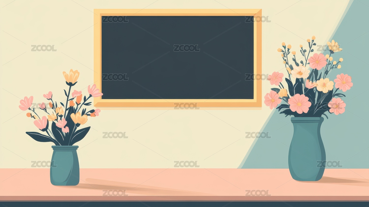 教室花香与黑板静谧布局