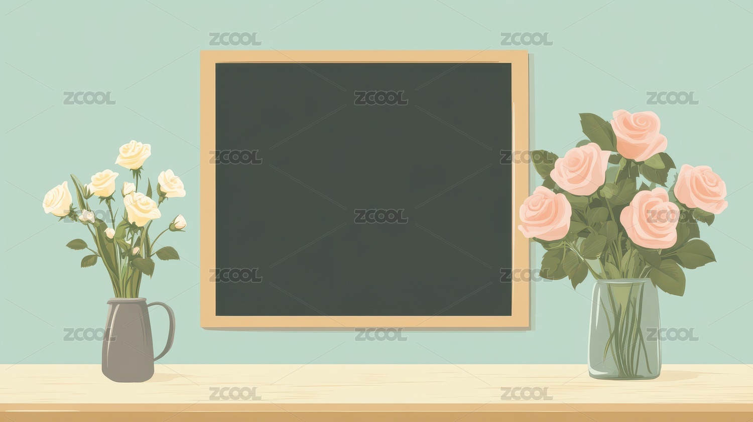 背景,黑板,花瓶,花朵,铅笔,桌面,水杯,教育