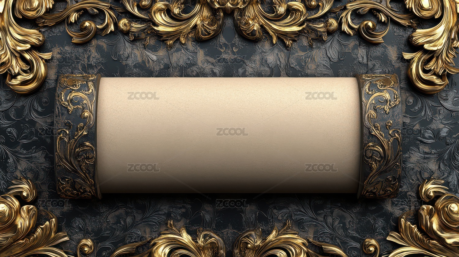 艺术,蓝色,金色,卷轴,华丽,复古,花纹,纸张,古典