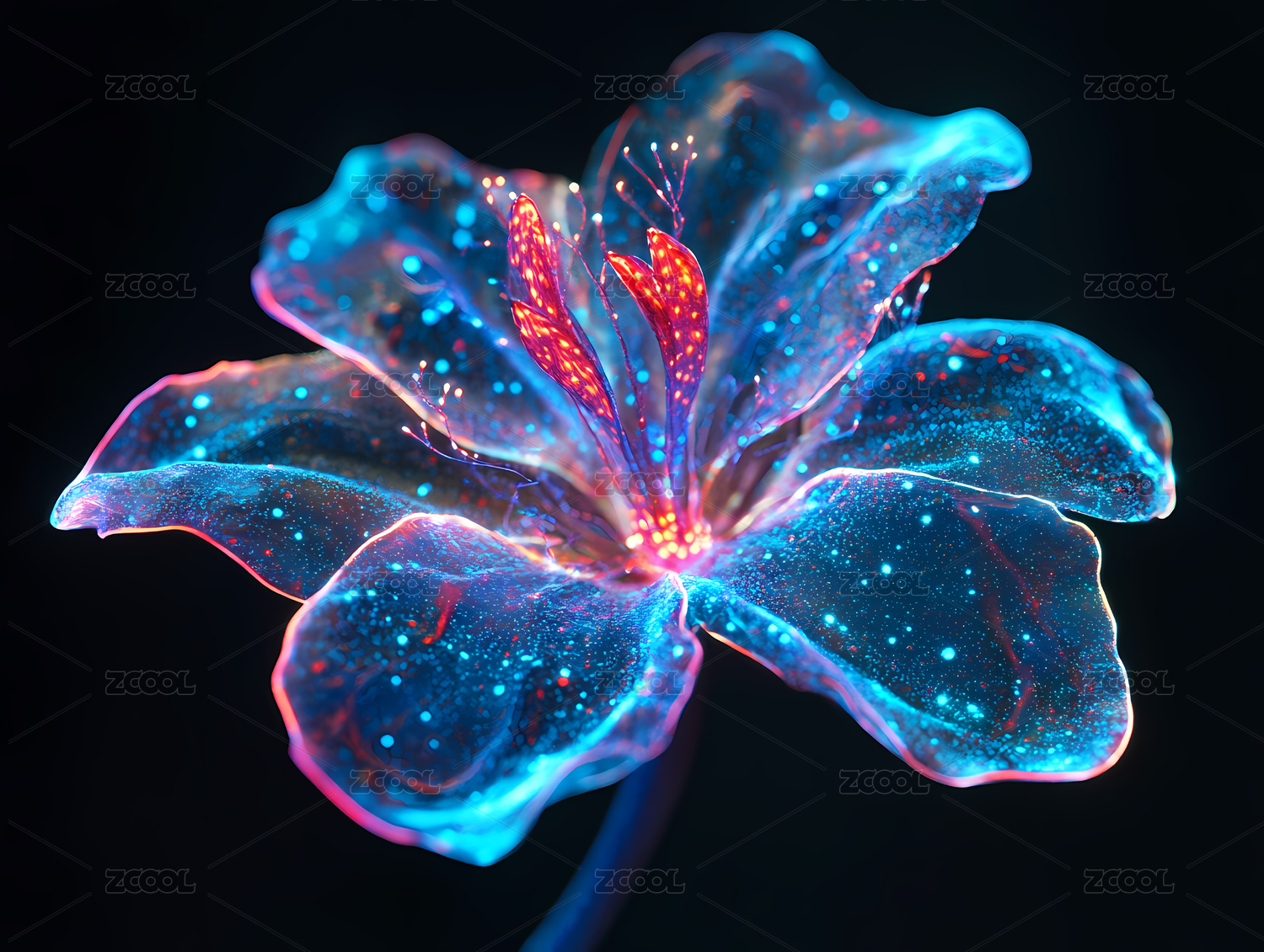蓝色,线条,花瓣,荧光,花蕊,橙色,装饰,暗黑
