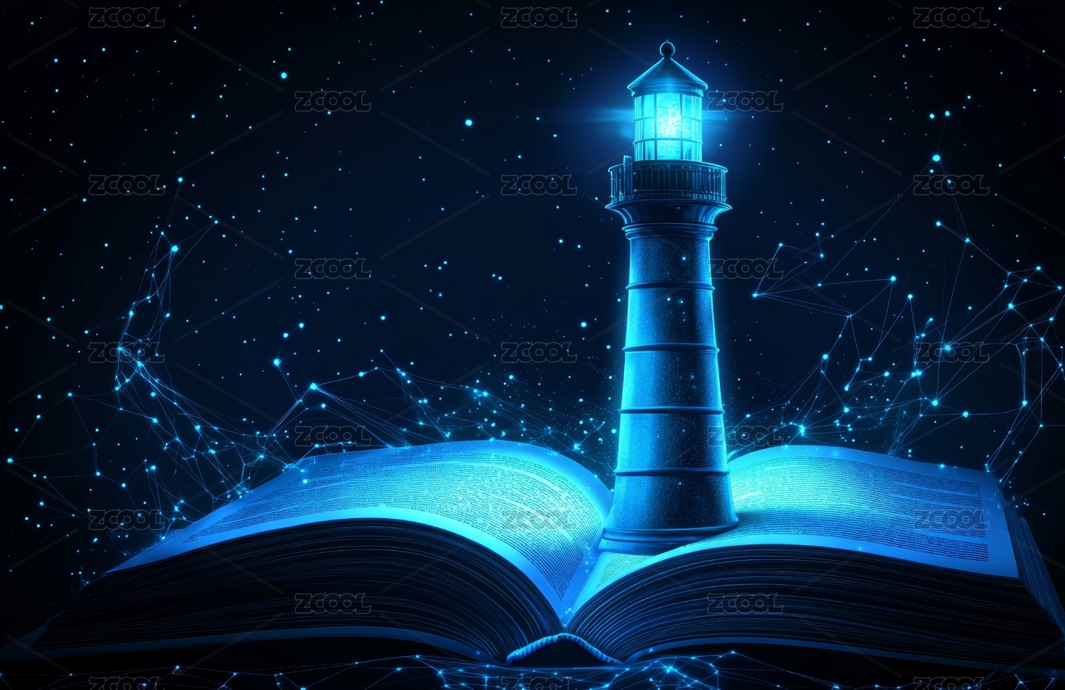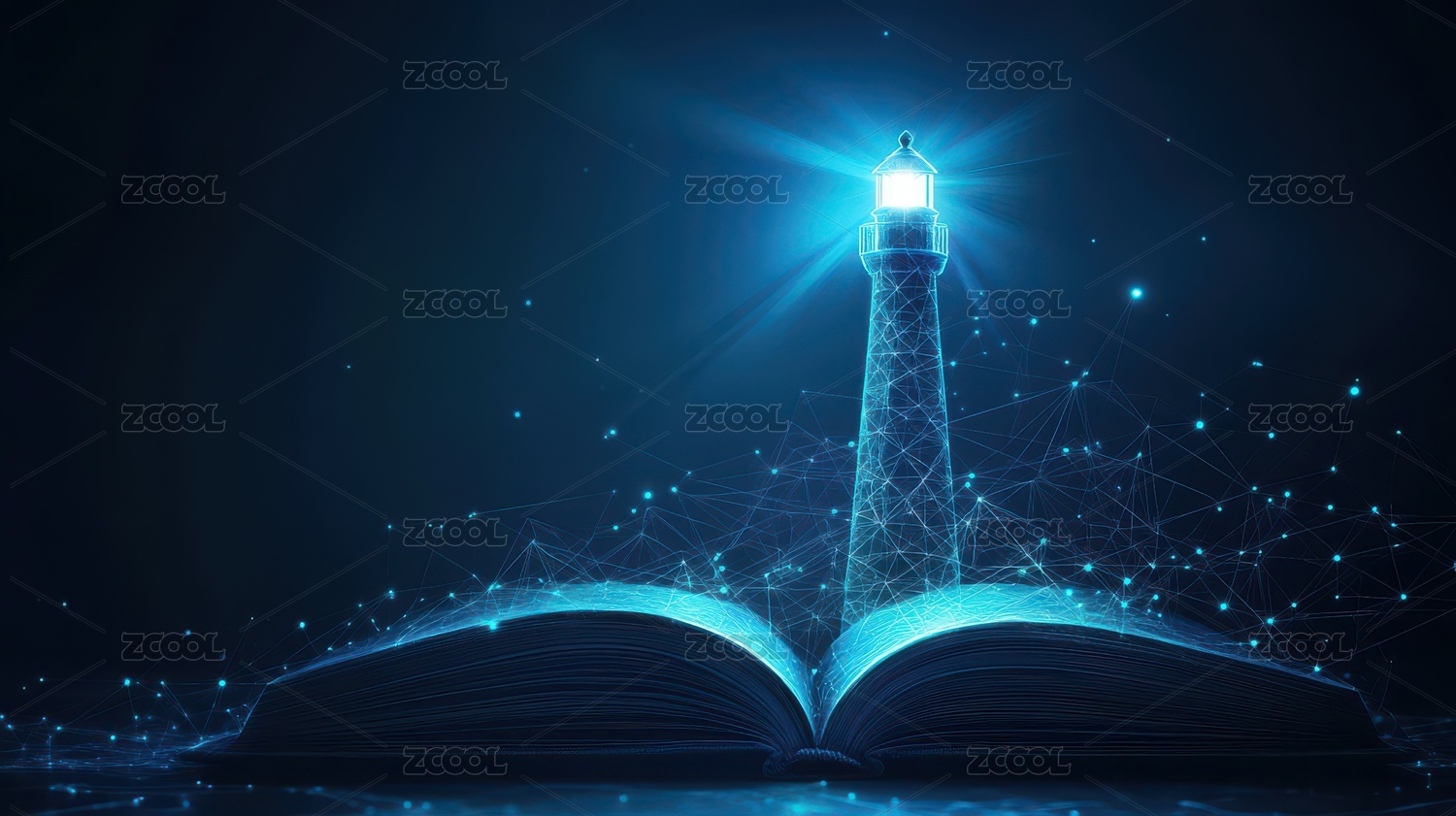 书本上的灯塔线条粒子