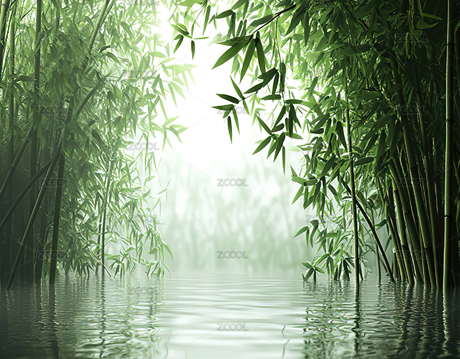 宁静的竹林水景