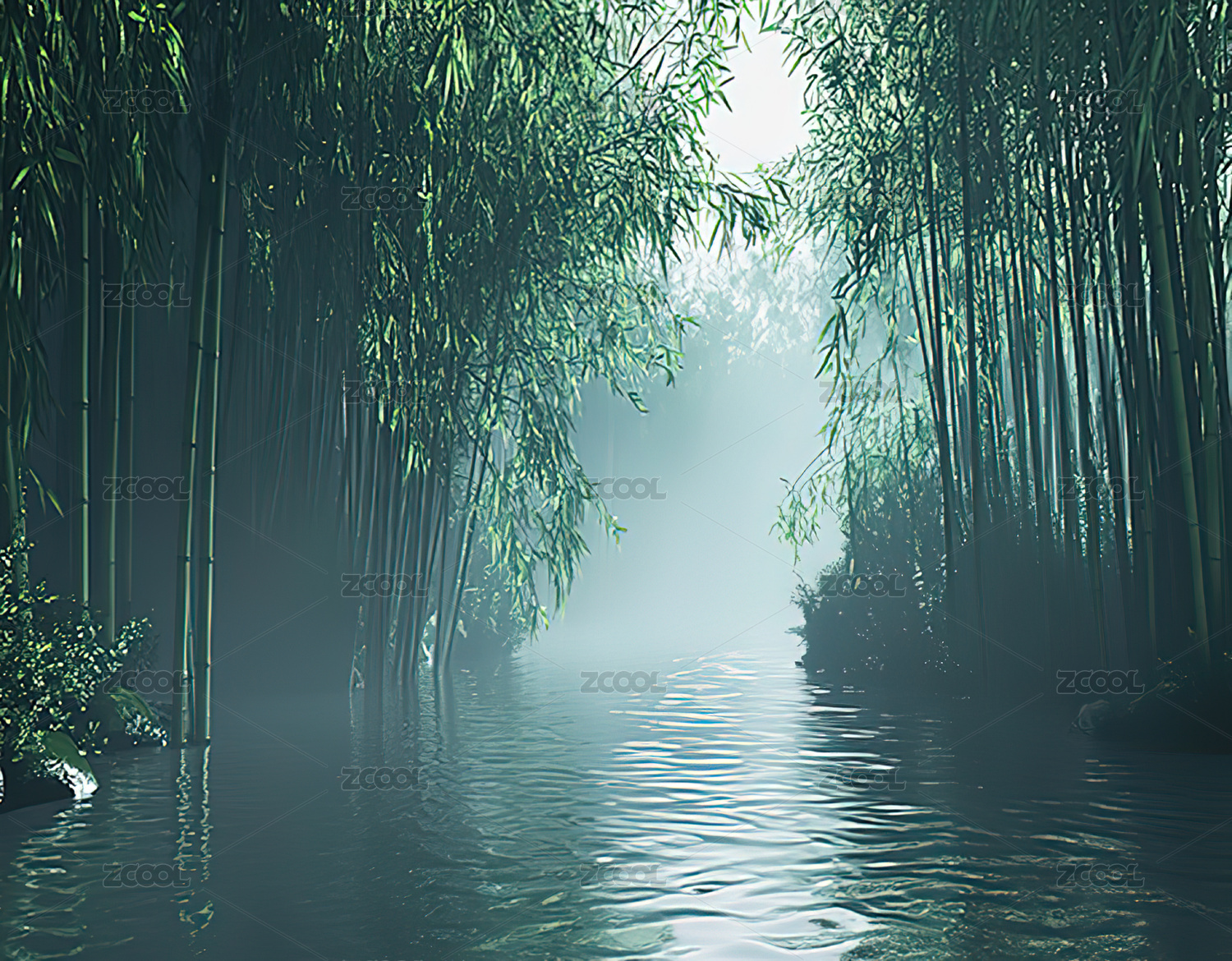 竹林溪流静谧图景