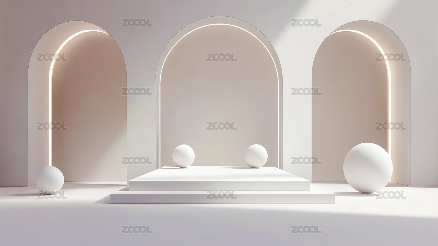 白色,电商,电商展台,展台,3D,场景,室内,留白,产品,设计