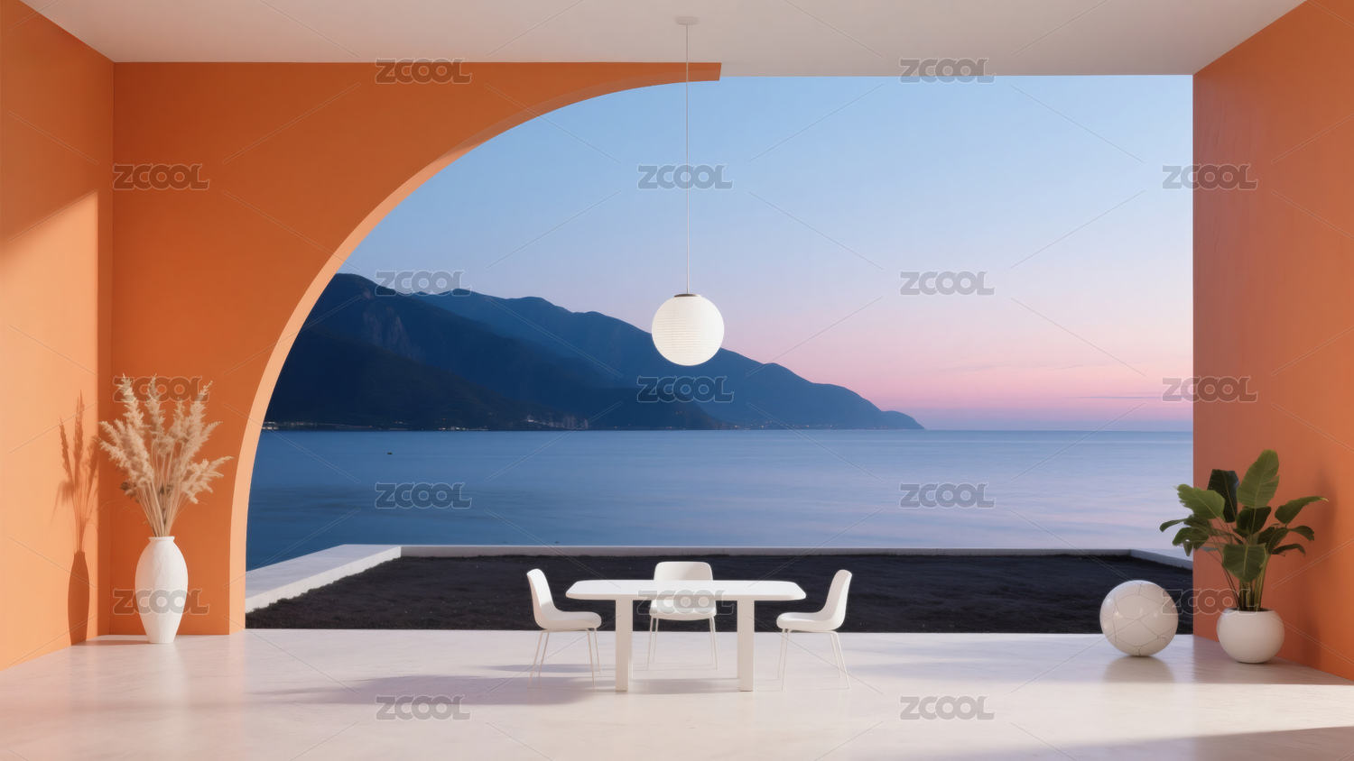 橙色,白色,家居,自然,海景,山,湖,风光,风景,建筑