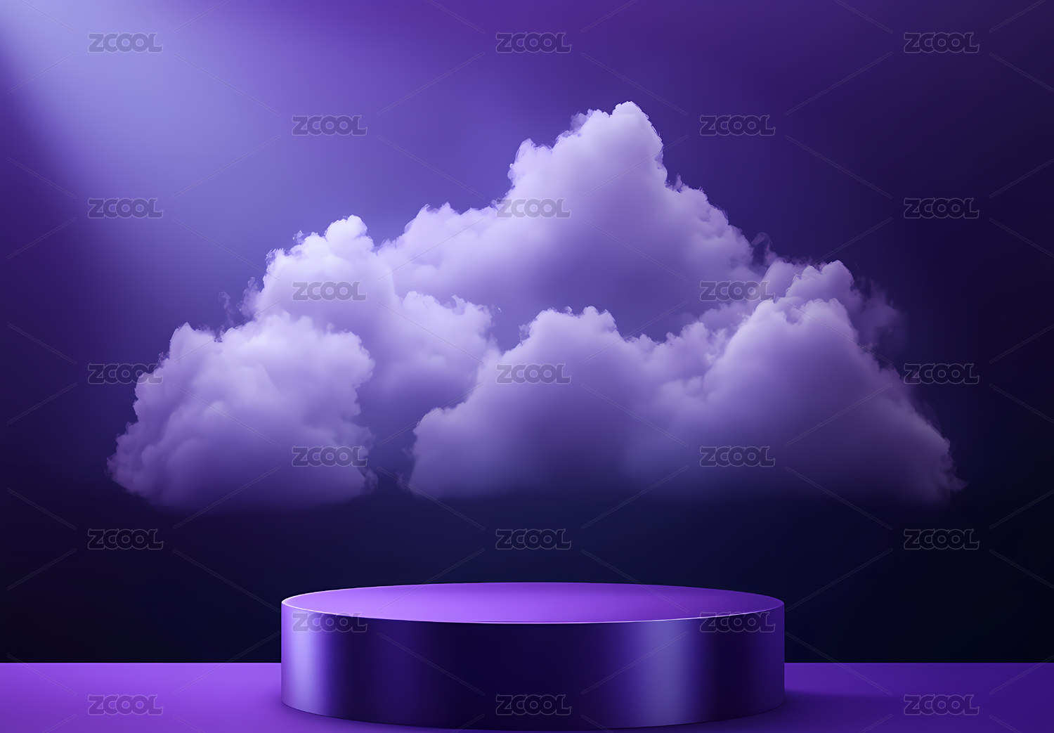 紫色云朵背景的圆形展台