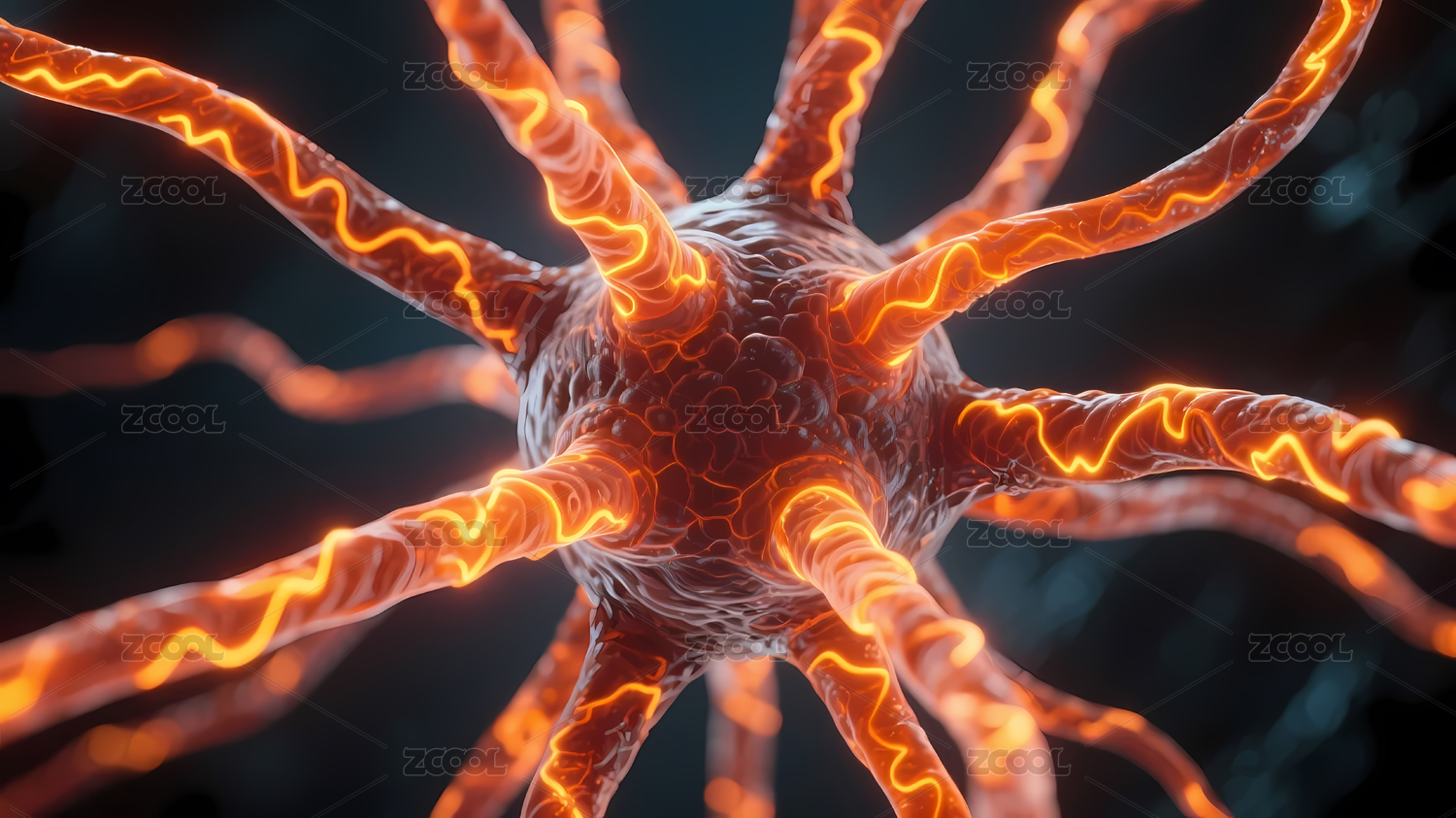 绿色,红色,神经元,细胞,灰色,模糊,背景,结构,生物,细节
