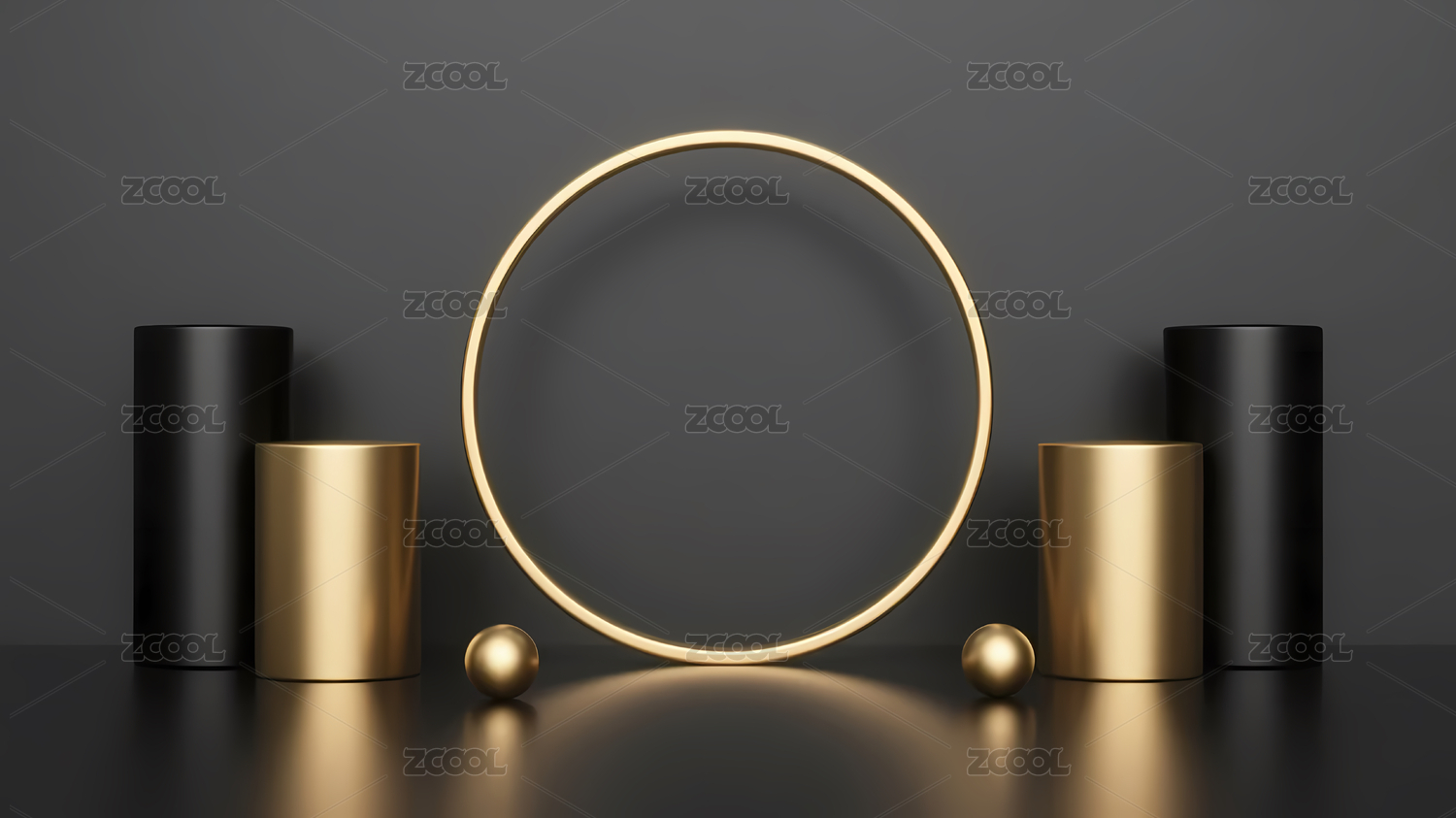 金色圆框黑金圆柱物体