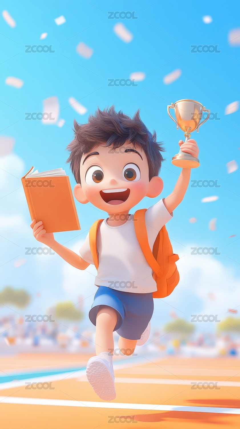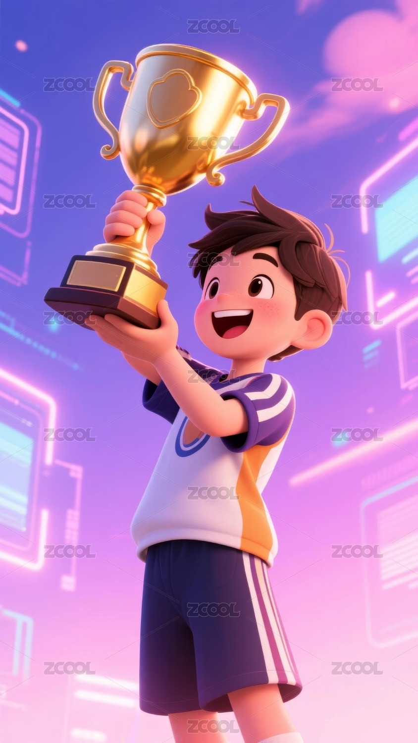 主视觉,场景,获奖,男孩,喜悦,庆祝,奖杯,童真,欢乐,胜利