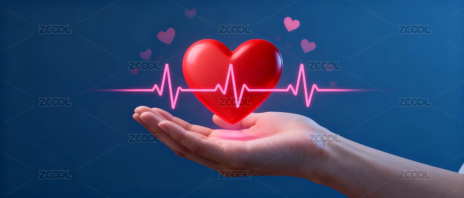 手托爱心心电图健康主题