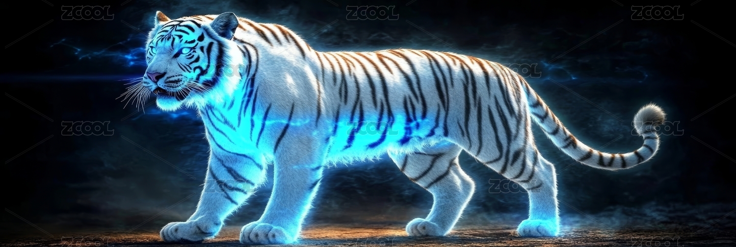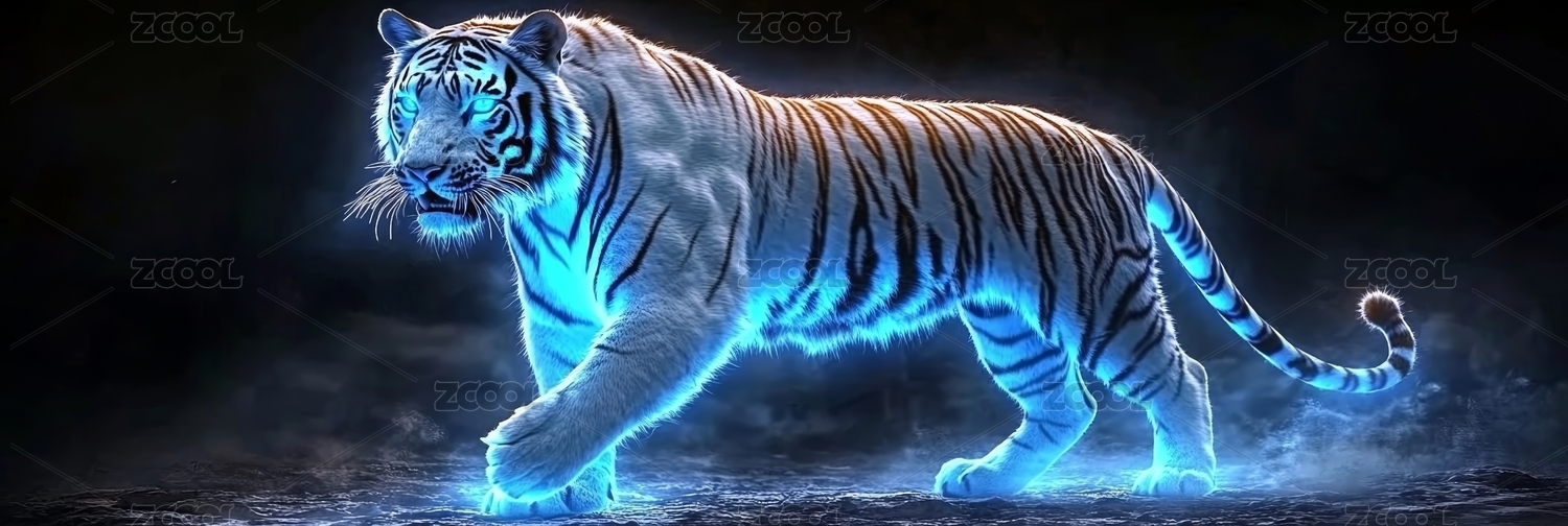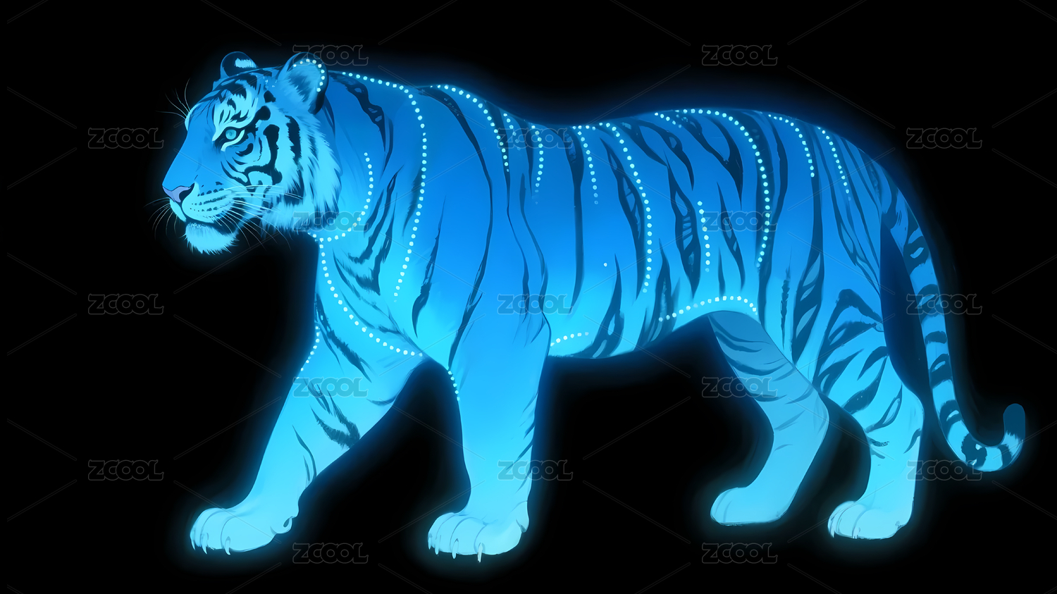 白色,蓝色,背景,主体,发光,黑色,老虎,身体,条纹,醒目