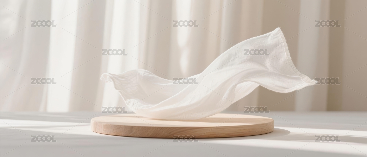 柔软洁白的棉质布料堆叠在温暖阳光下