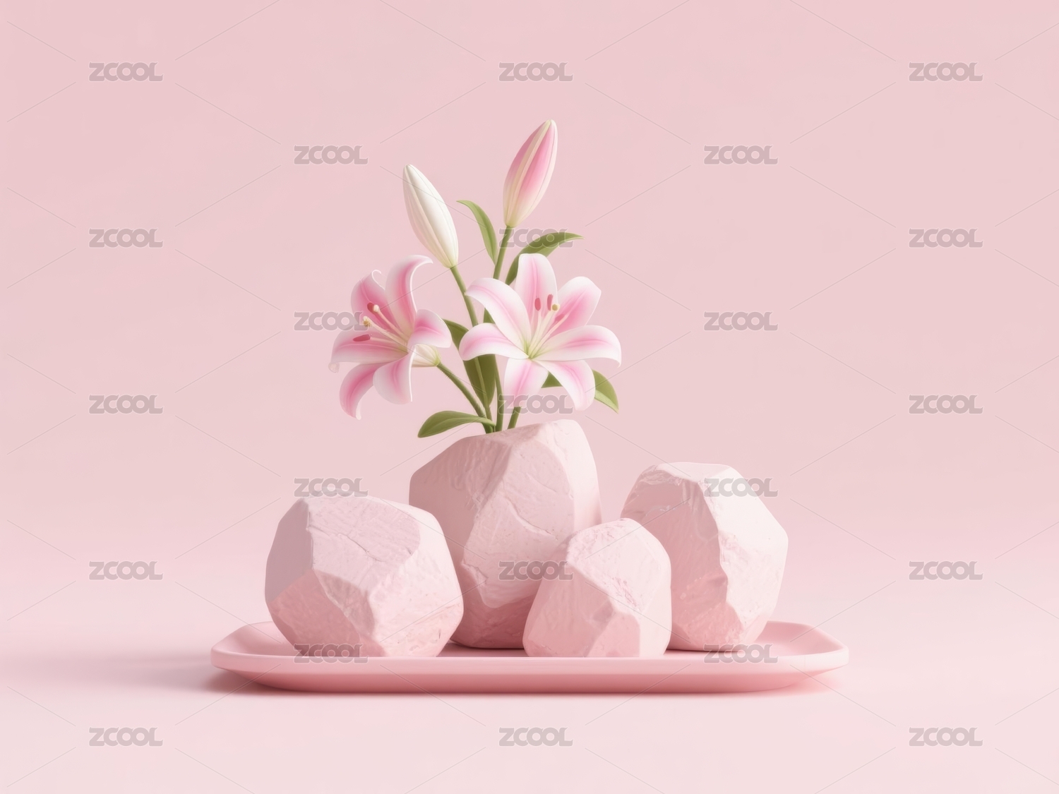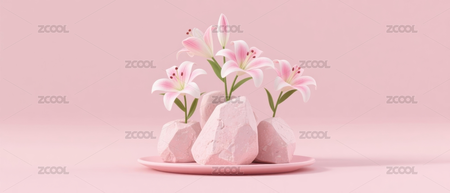 主视觉,场景,百合,装饰,粉色,产品,展示,花卉,简约,立体