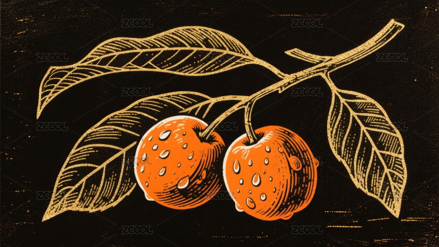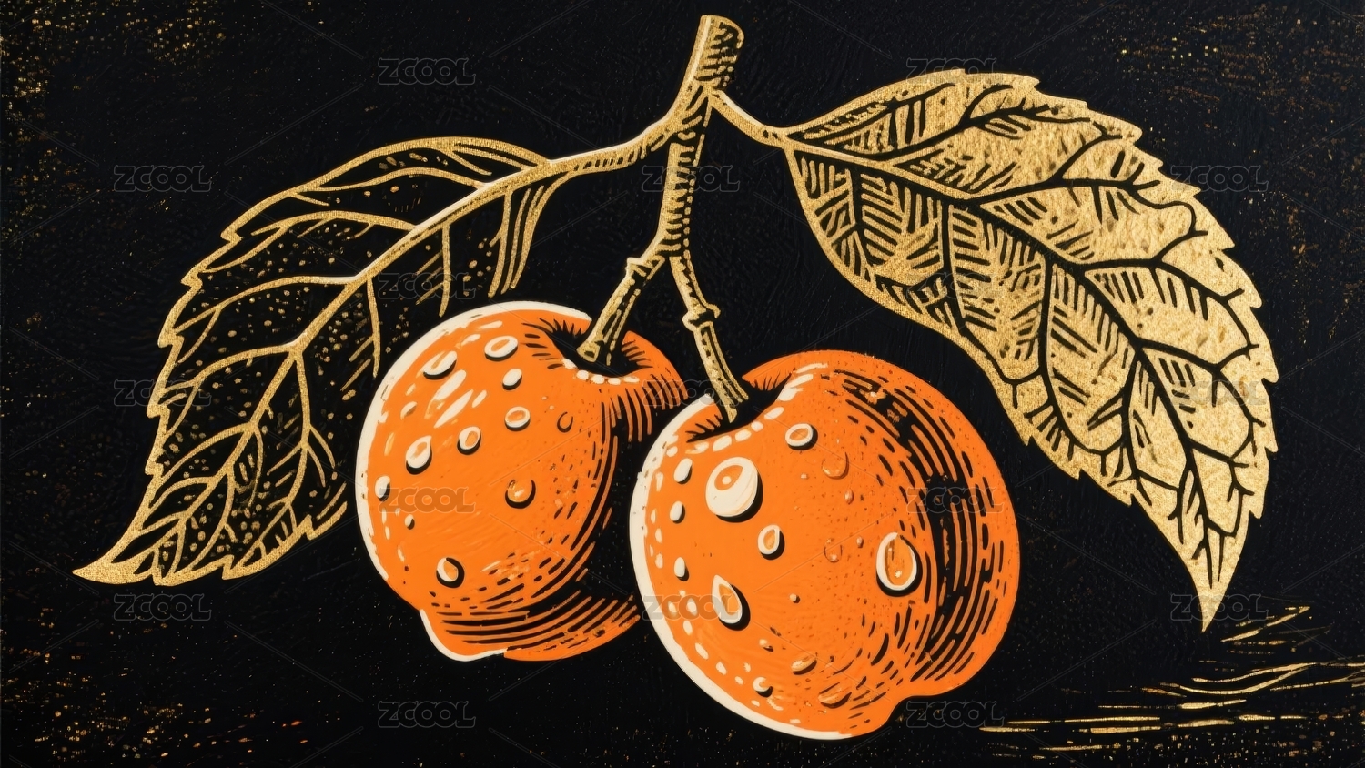 主视觉,场景,金色,装饰,简约,艺术,植物,设计,金果,枝叶