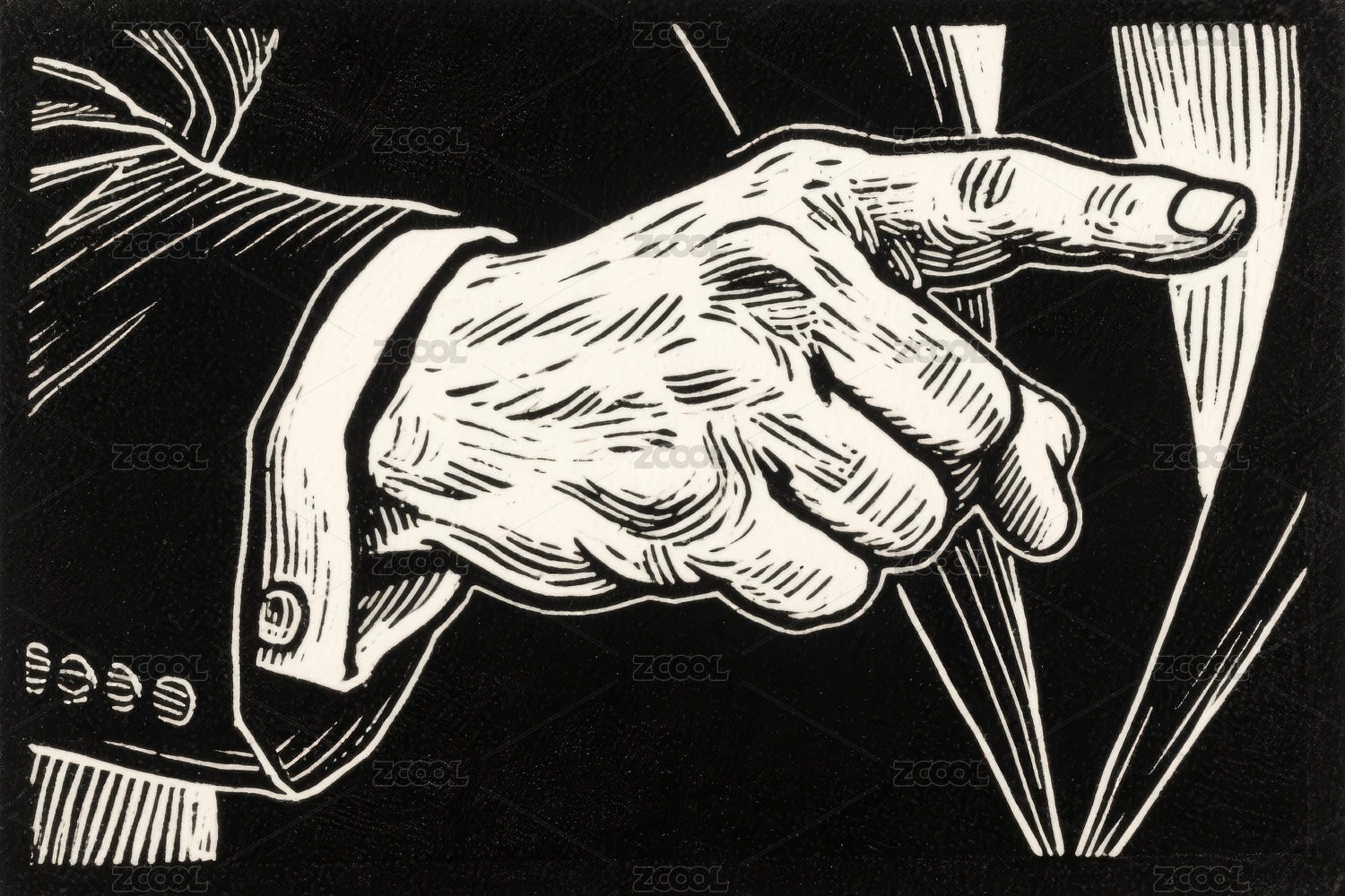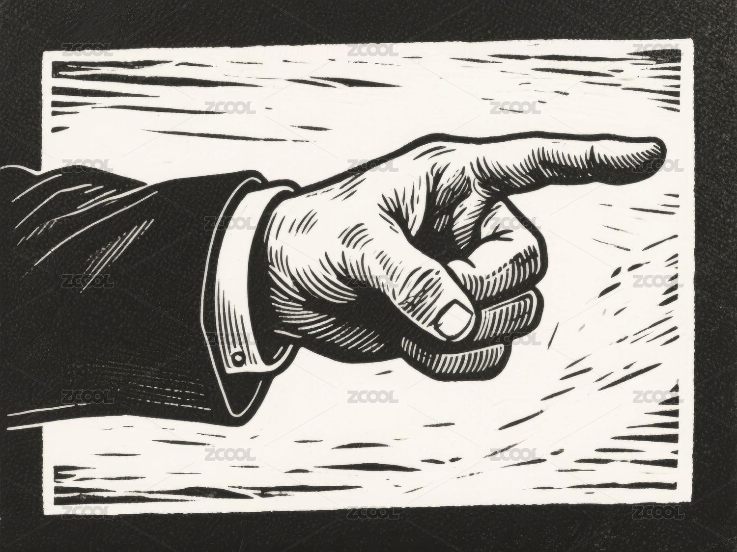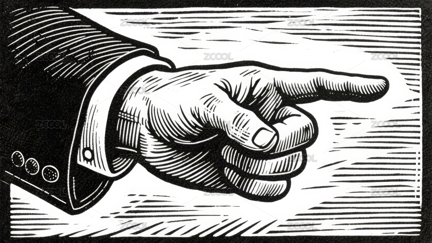 黑白线条画中的手指指向