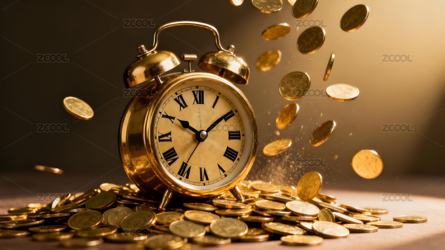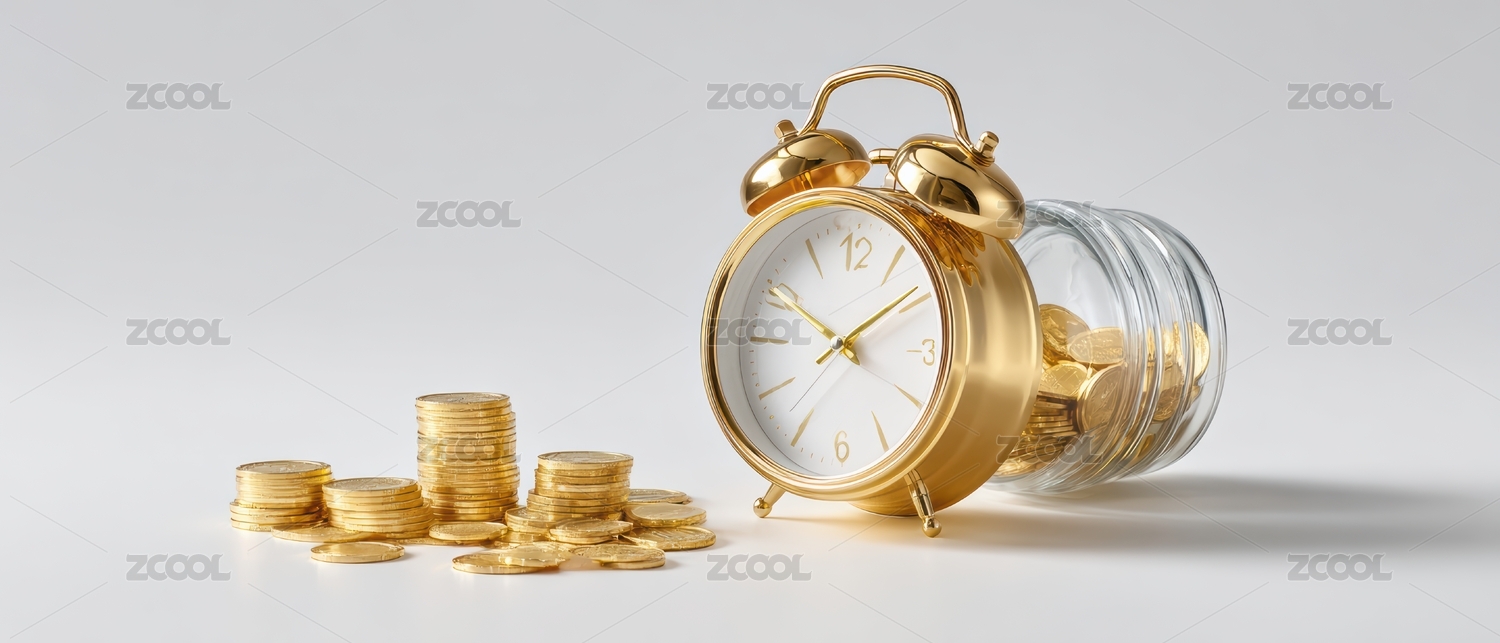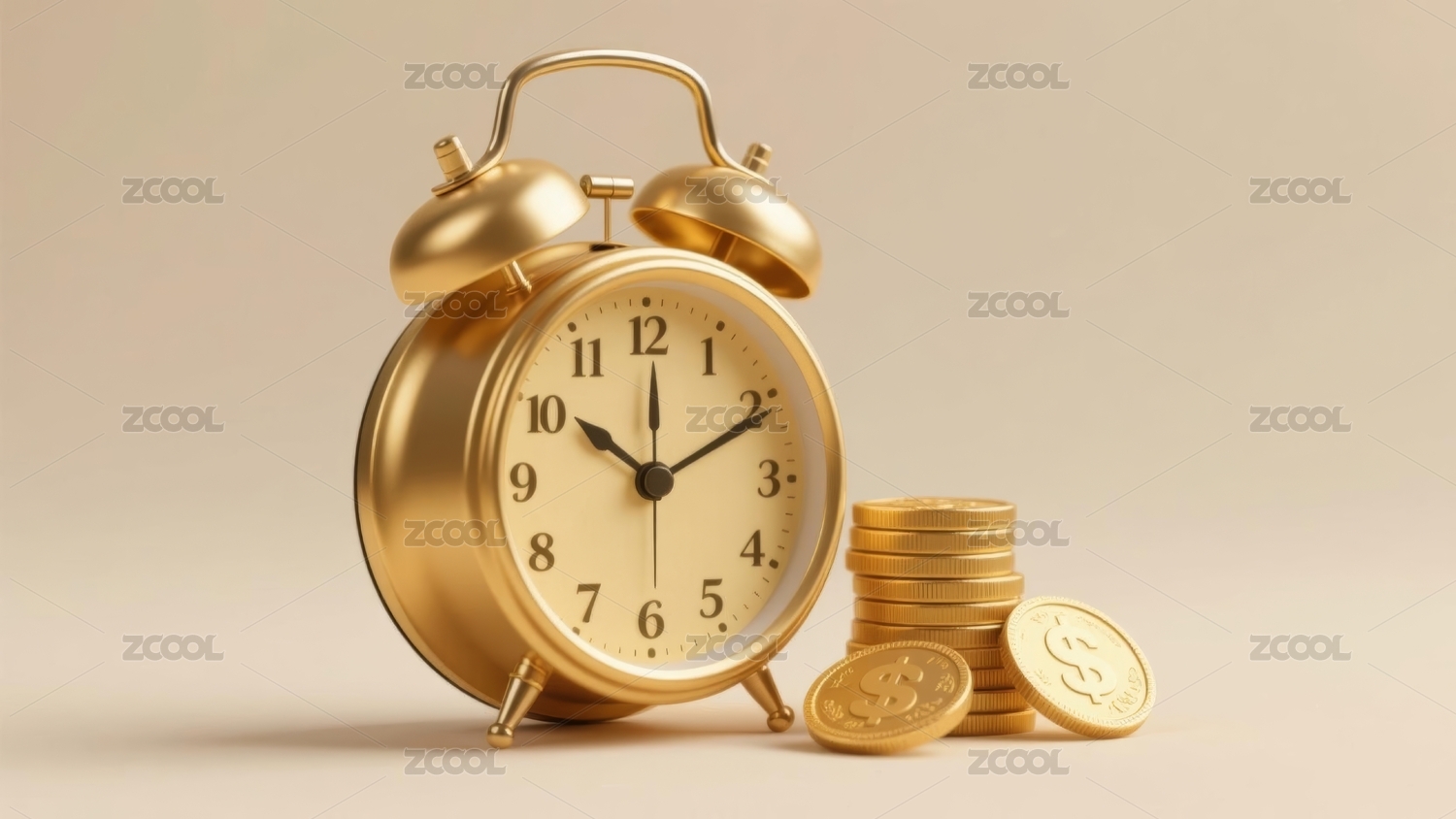 主视觉,场景,闹钟,财富,理财,金色,时钟,硬币,金币,时间