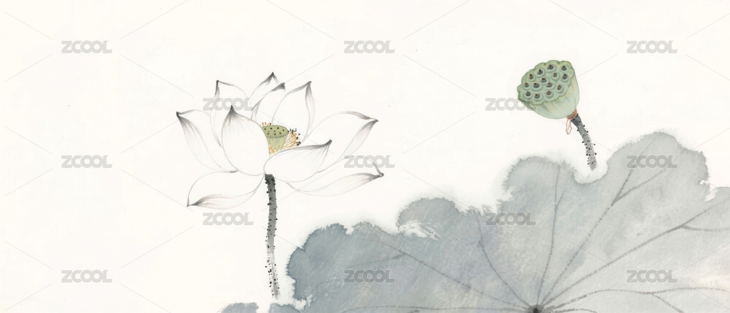 水墨风荷塘荷叶荷花