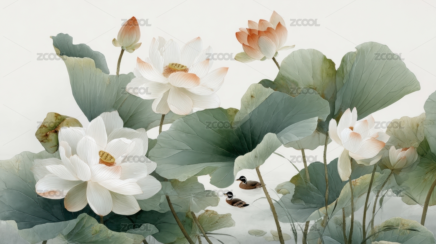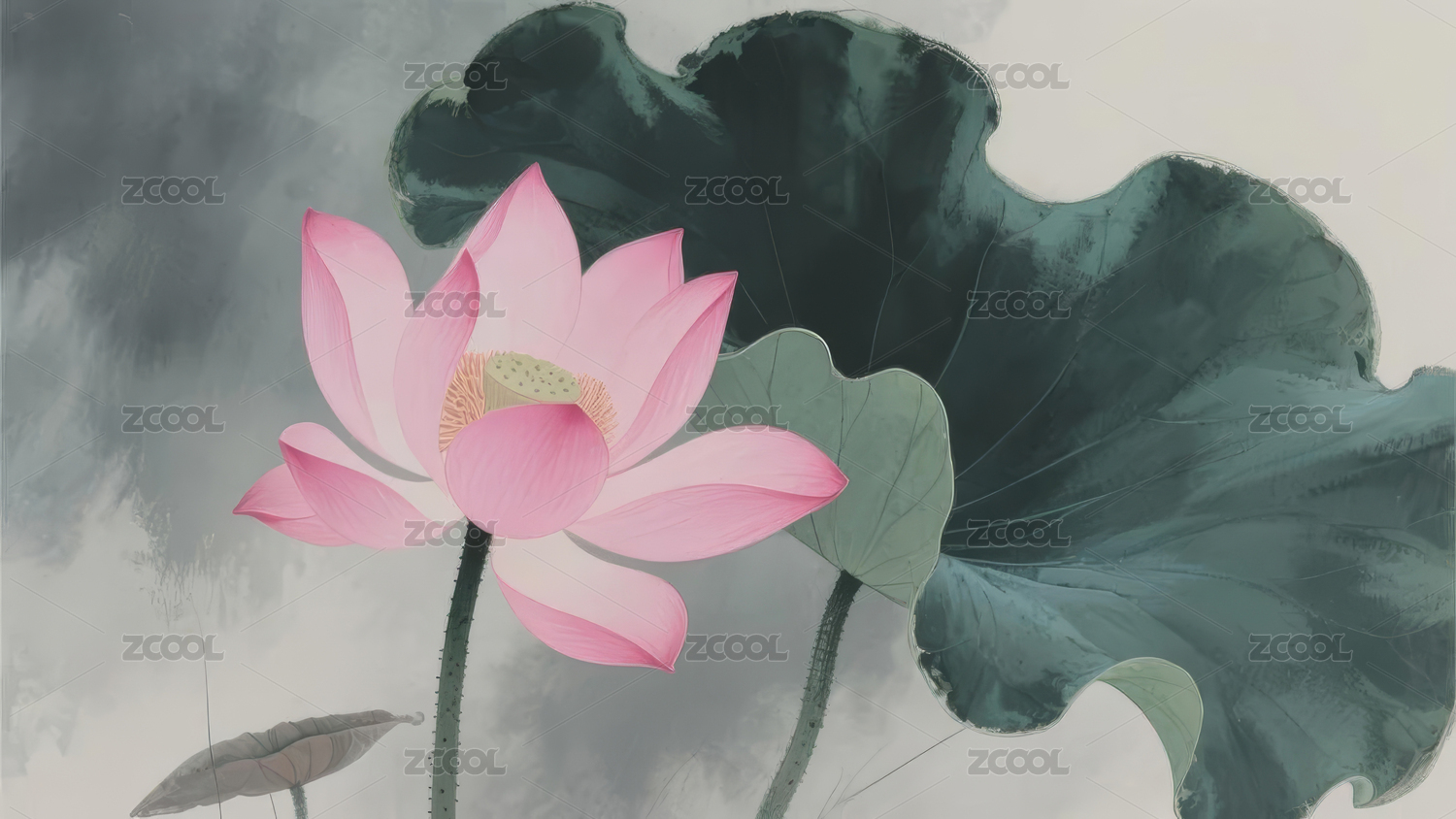 荷花中式国画装饰场景