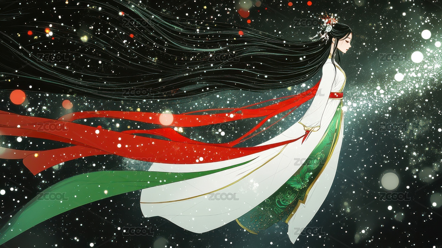 星空,梦幻,星星,长发,服饰,飘带,仙子,飘逸