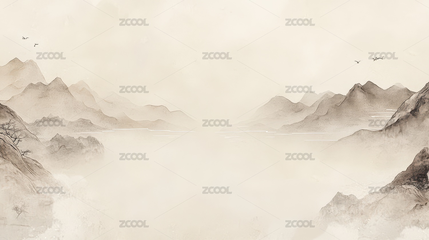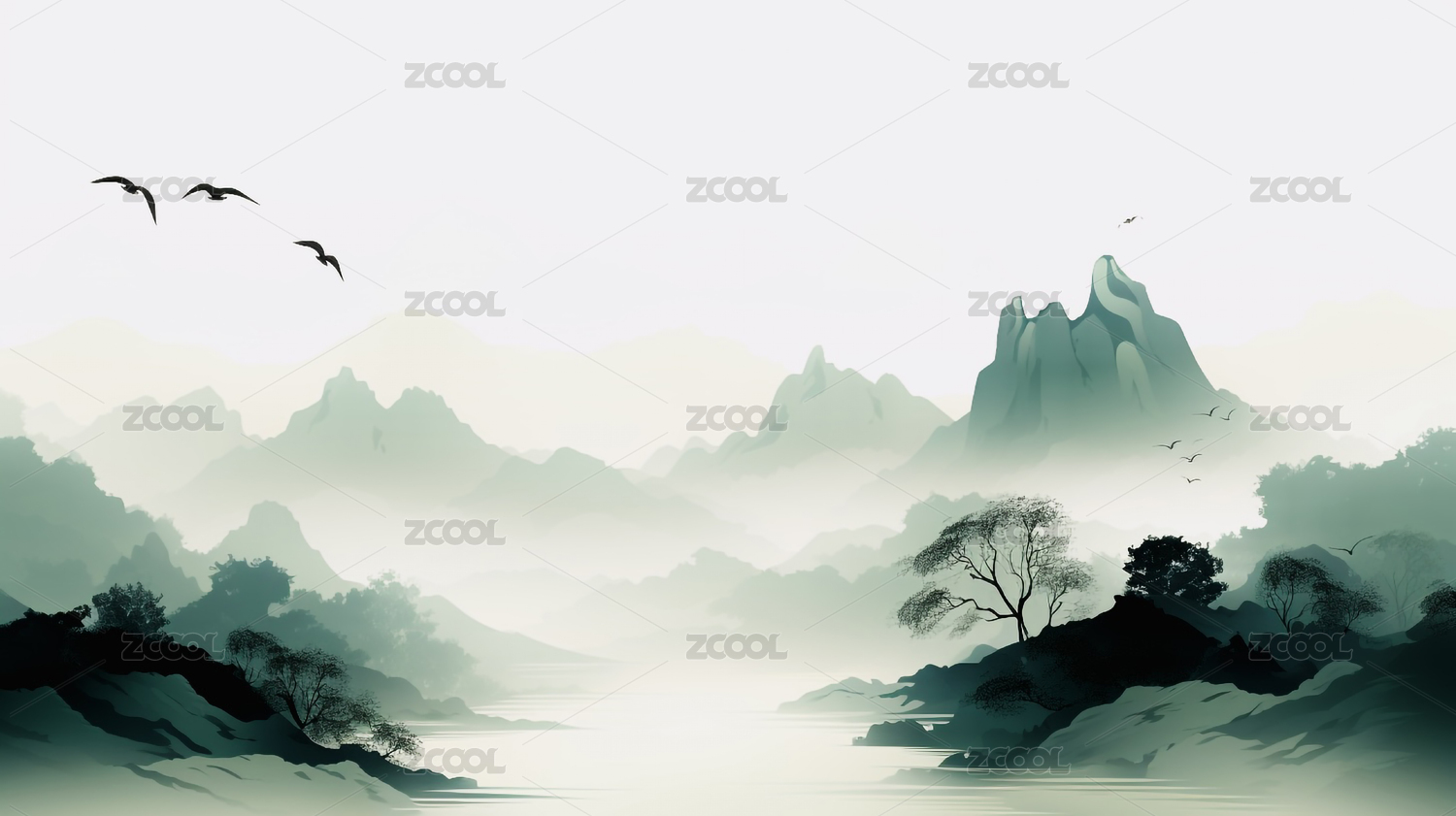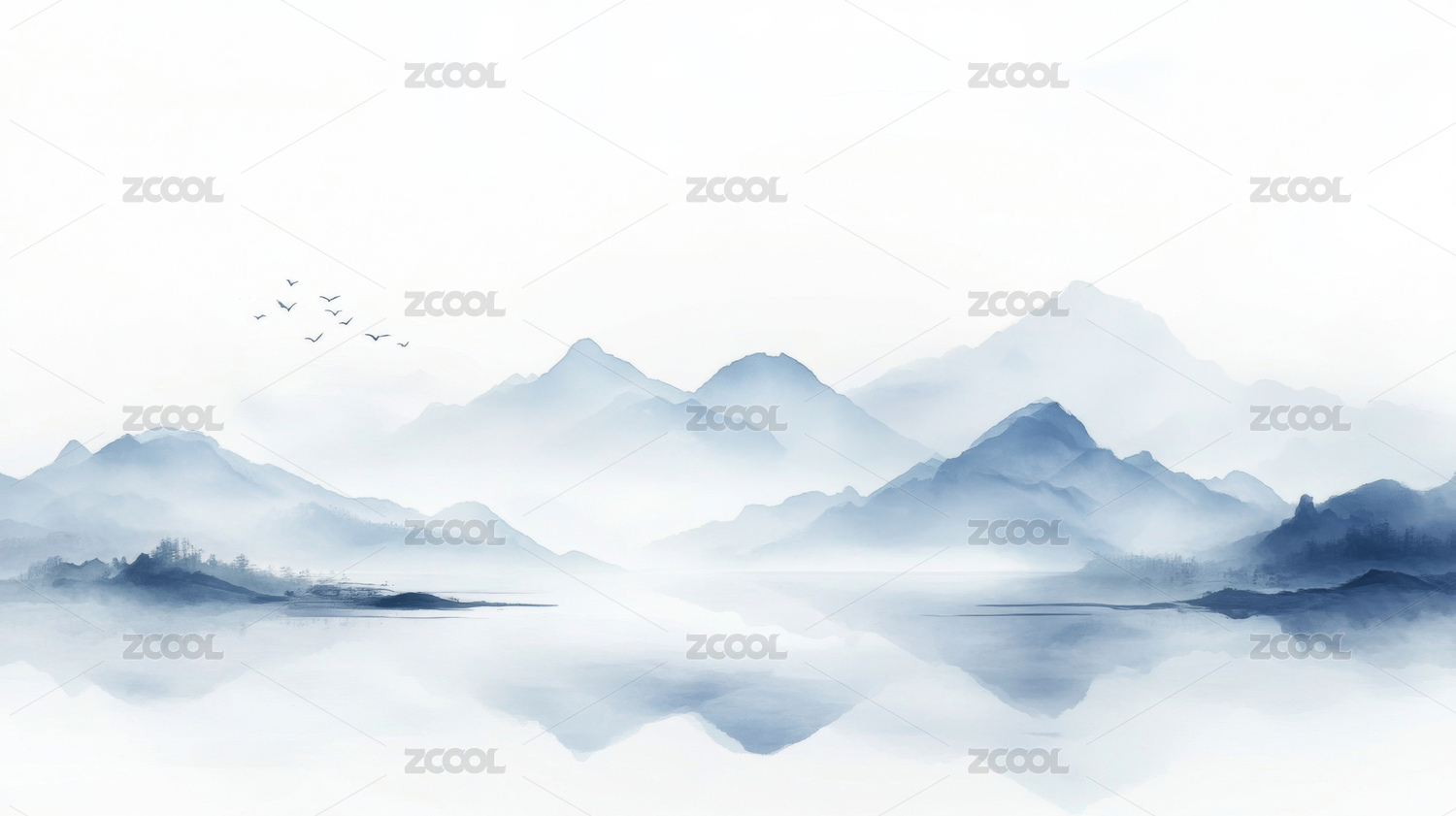 自然,山峰,薄雾,湖水,飞鸟,清晨,寂静,淡雅