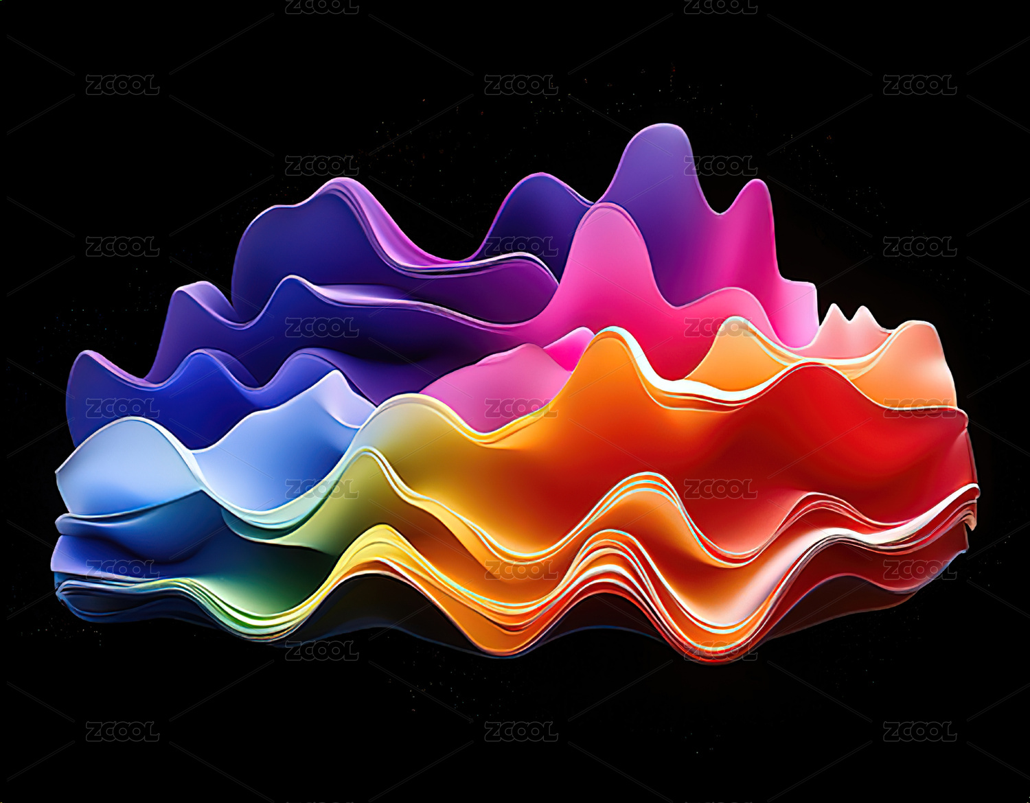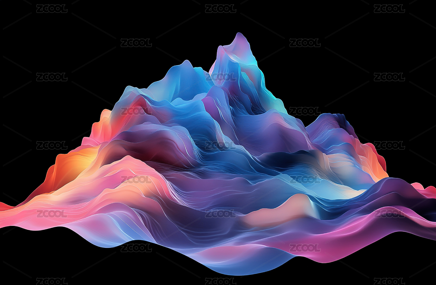 抽象鲜艳彩色时尚潮流的山3D立体颜料插画