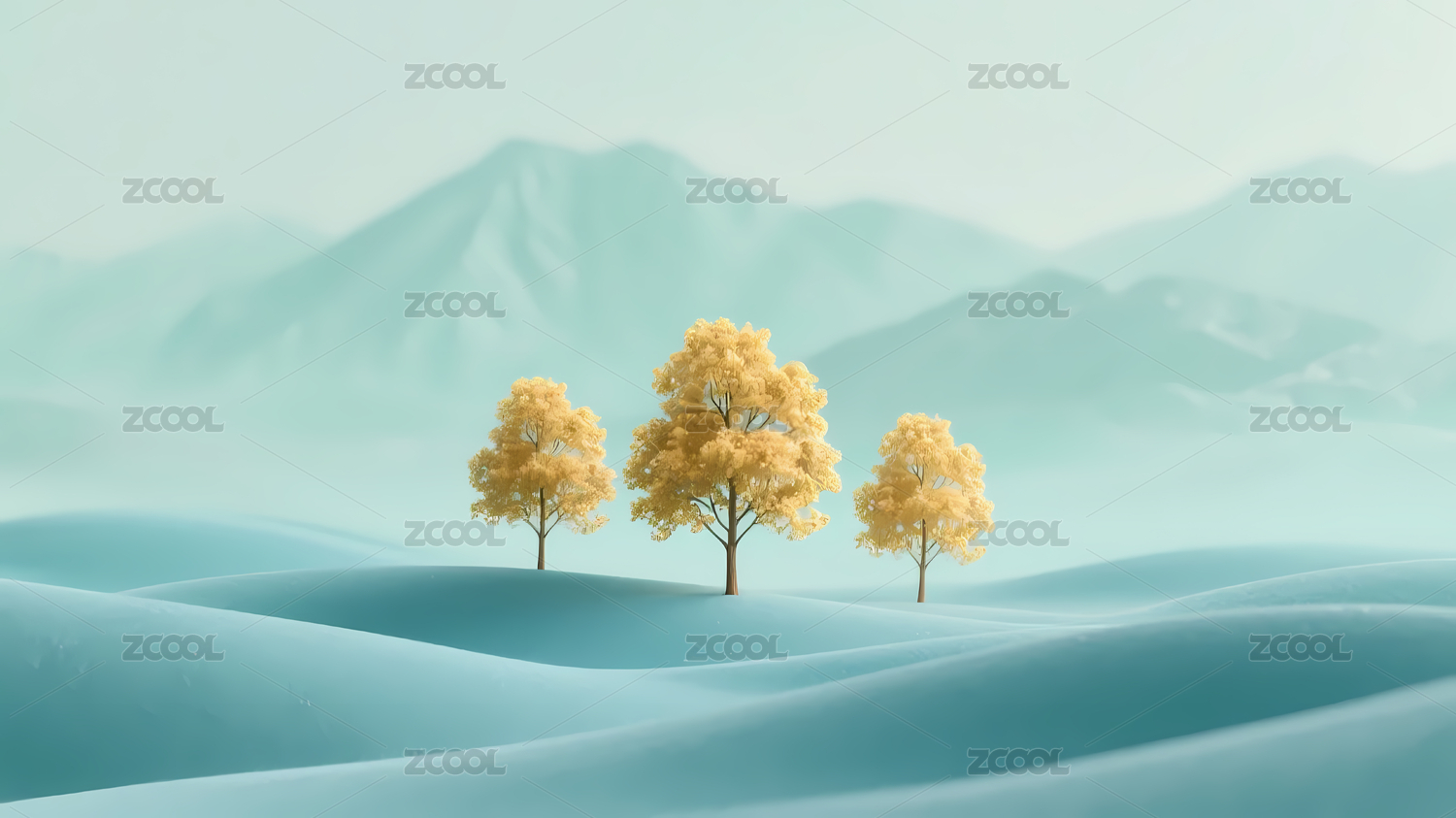 孤独的金树在梦幻沙丘上