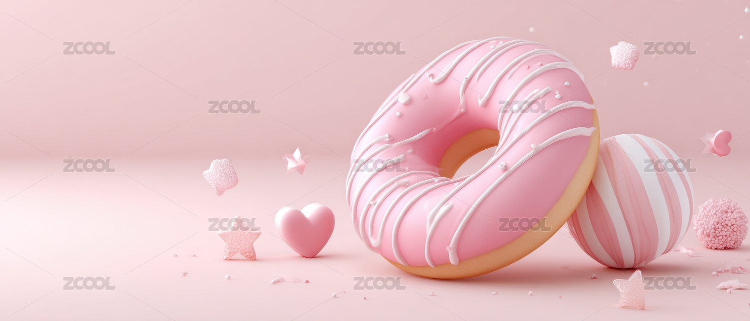 装饰,创意,背景,爱心,粉色,球体,场景,甜甜圈,甜点,美食