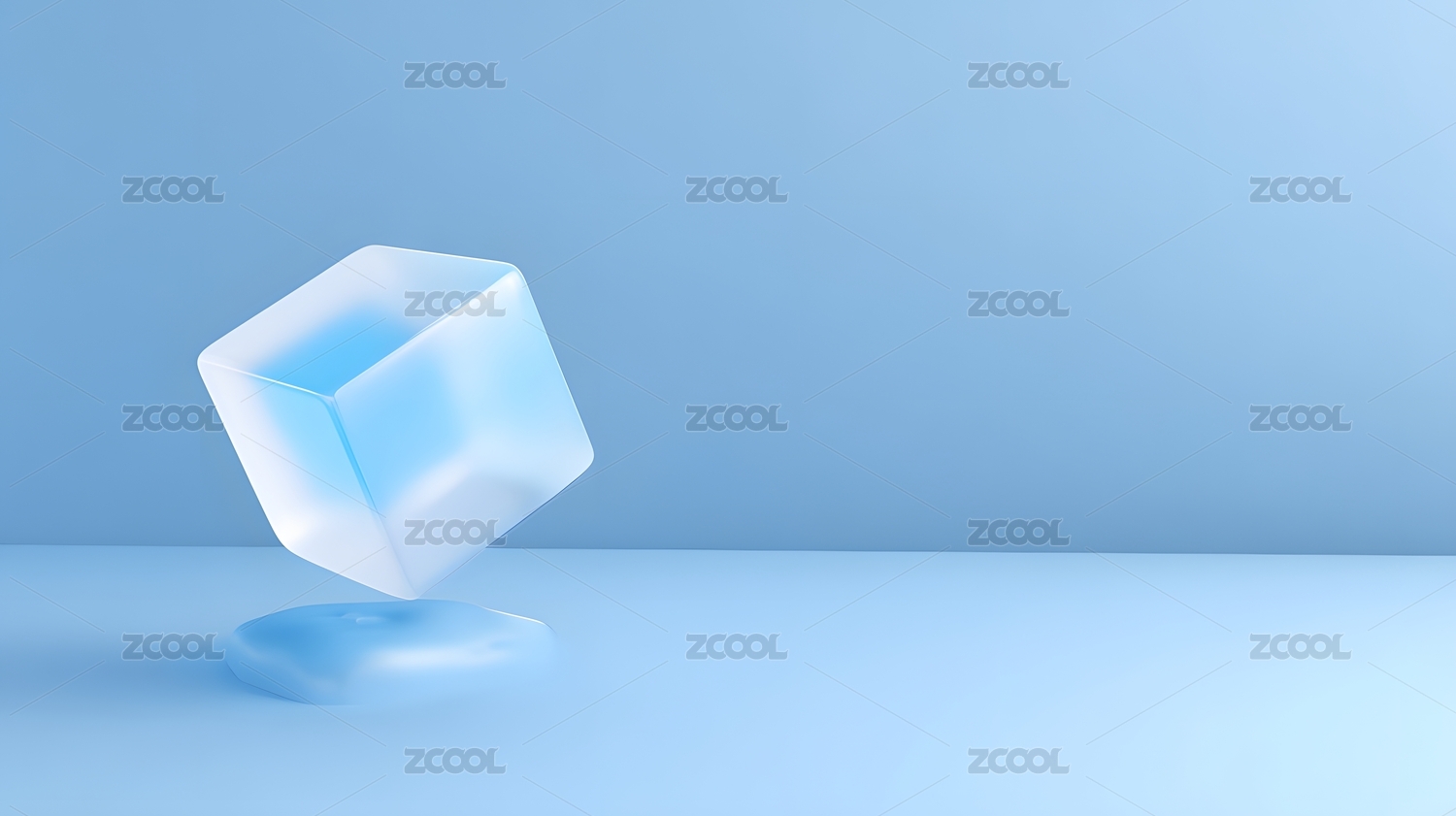 冰块悬浮蓝色背景