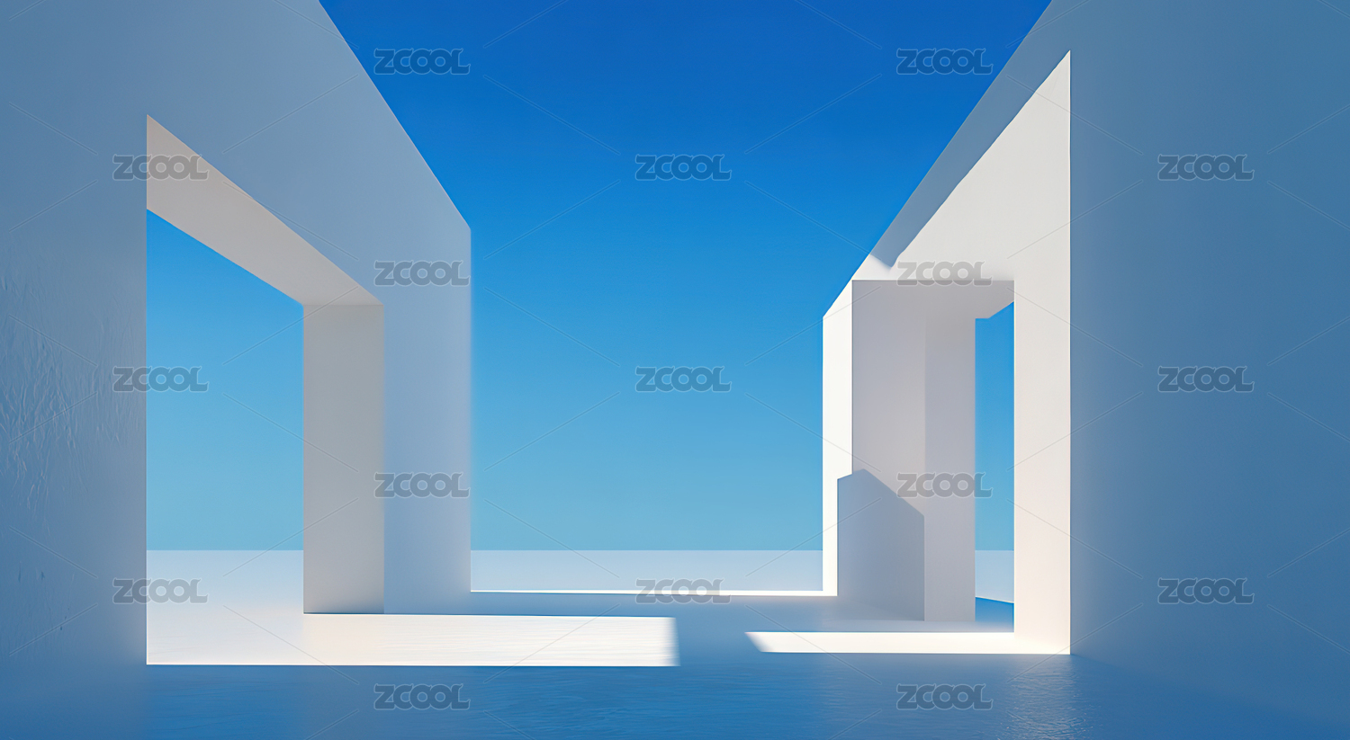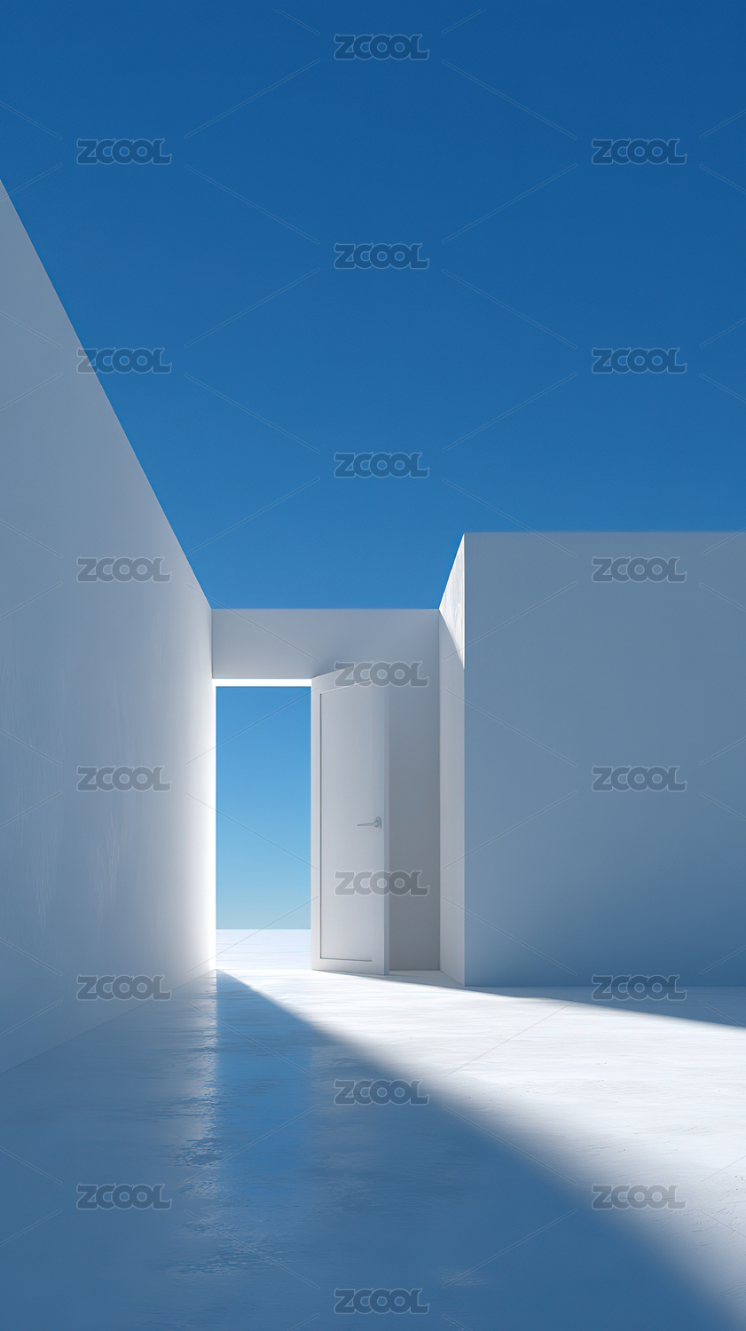 白色建筑与蓝天的几何空间