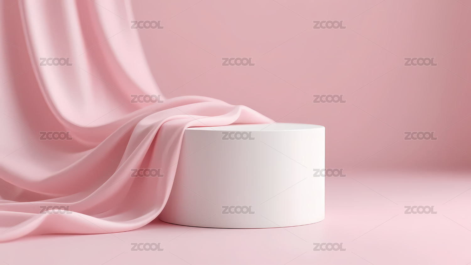 粉色丝巾轻搭白色立方体的简约艺术场景