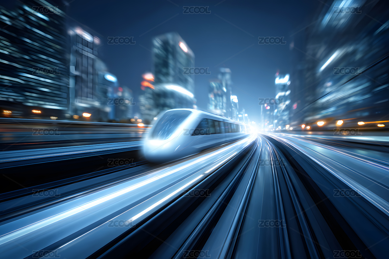 高速列车疾驰在城市夜景中