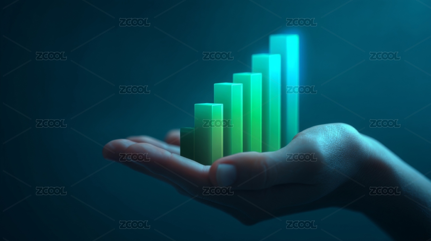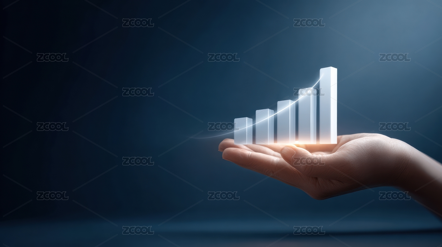 手掌托起增长的柱状图