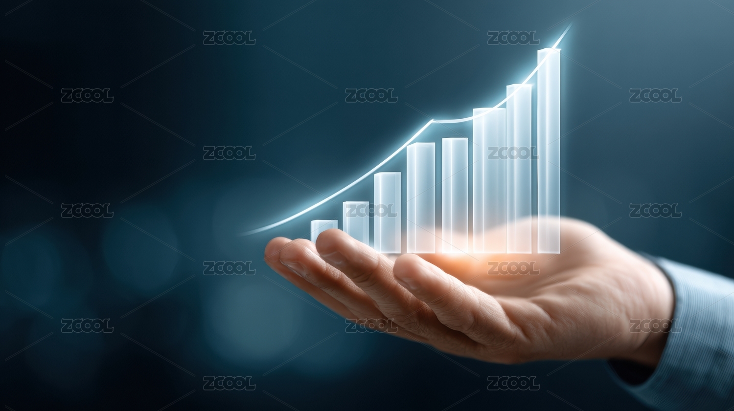手掌托举蓝色柱状图