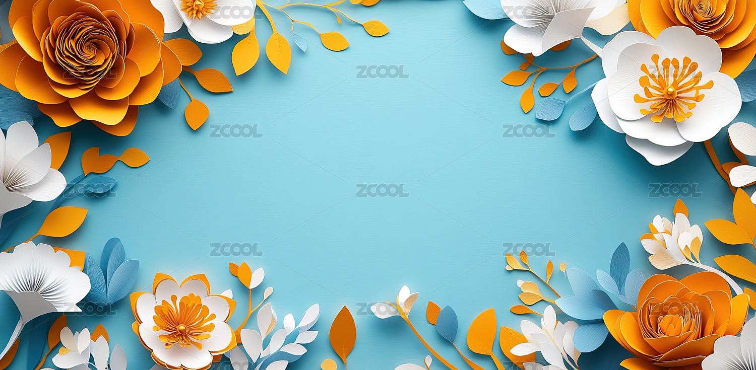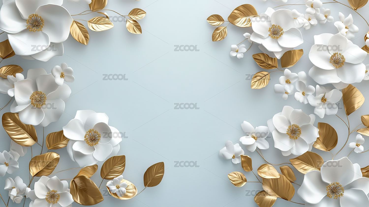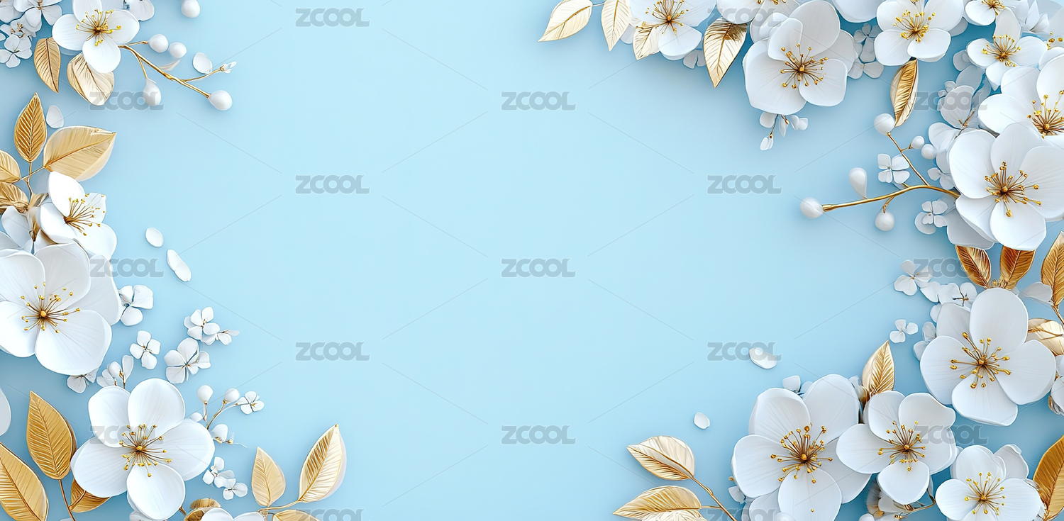 白金花朵浅蓝背景