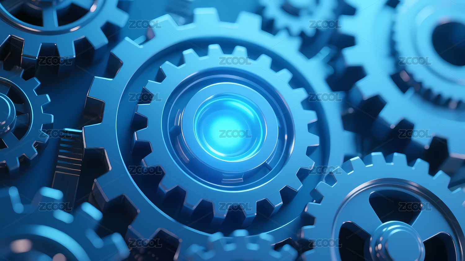 蓝色发光齿轮未来视觉