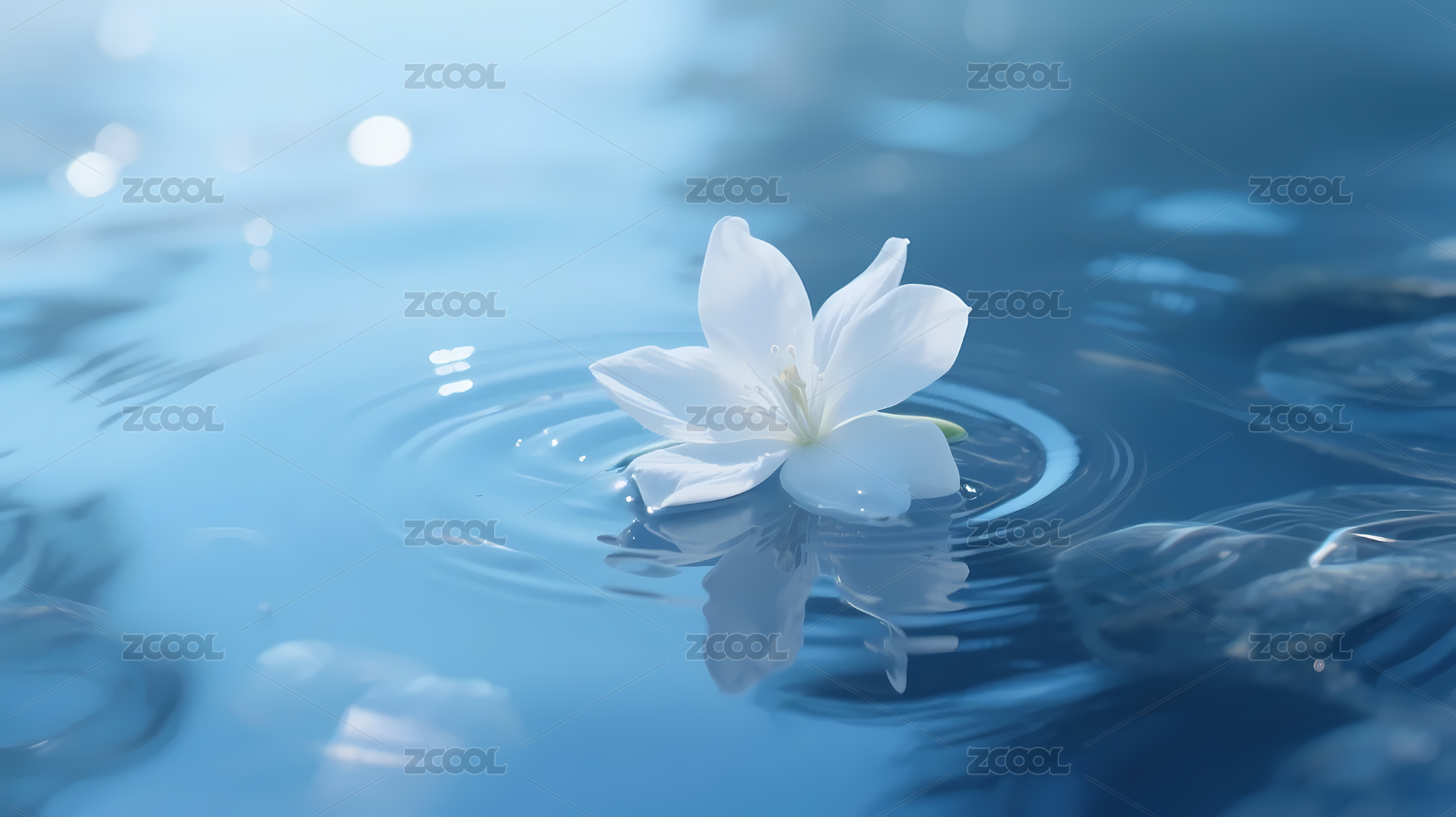 背景,自然,蓝色,白色,花朵,光斑,水面,涟漪,清澈,柔和